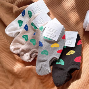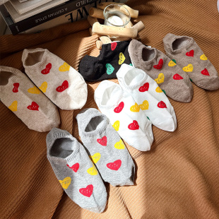 韩国东大门袜子船袜女纯棉春夏季 不掉跟防滑春夏爱心隐形低帮短袜