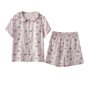 女士全棉短袖 短裤 套装 40支 睡衣夏款 宝领套装 薄款 纯棉双层纱布元