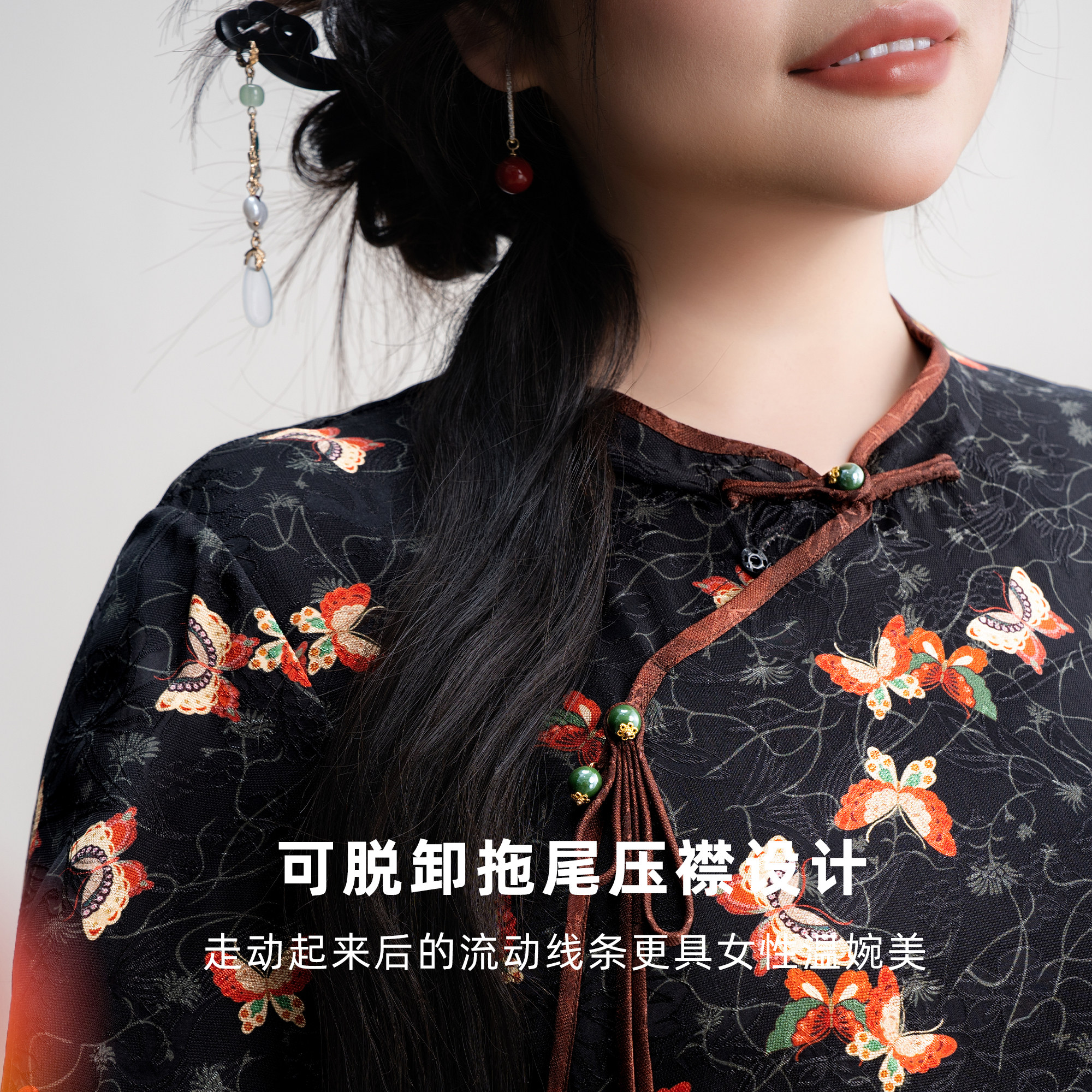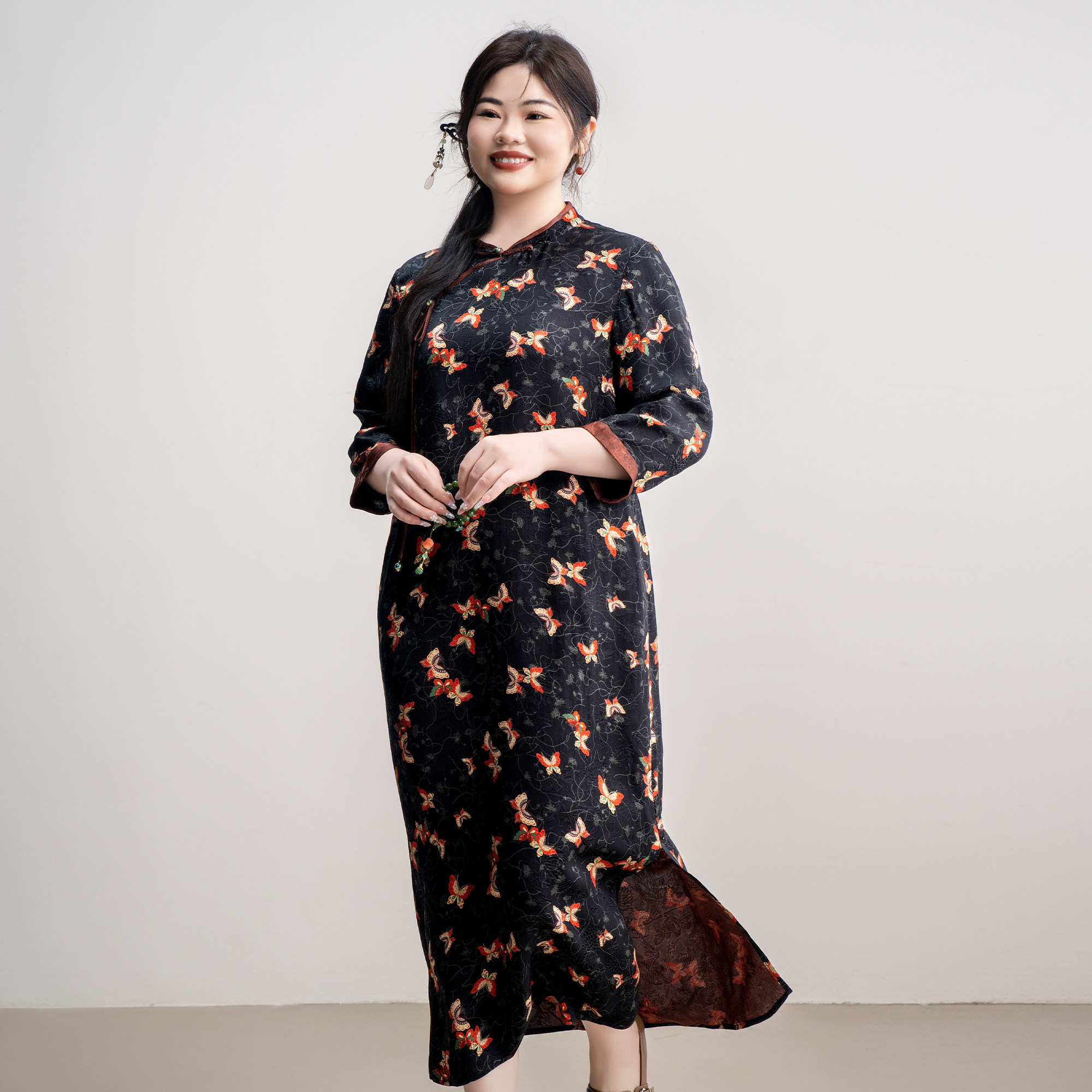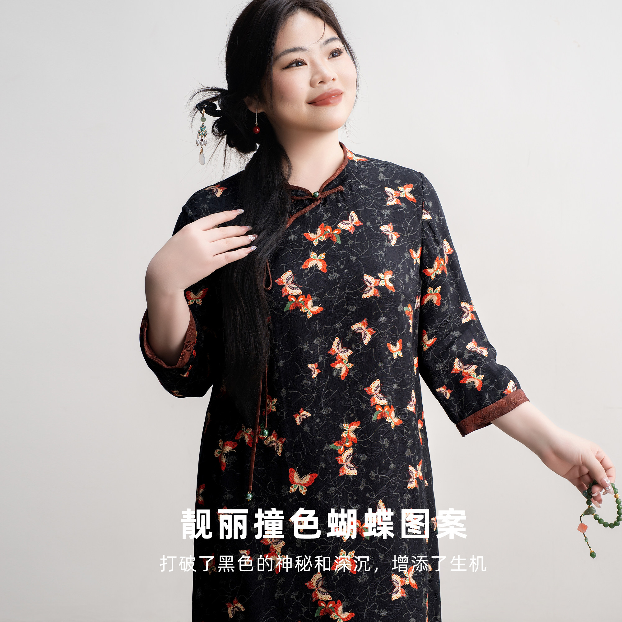 美丽客栈原创高端大码 胖mm200斤加肥加大人丝提花抑菌连衣裙 女装