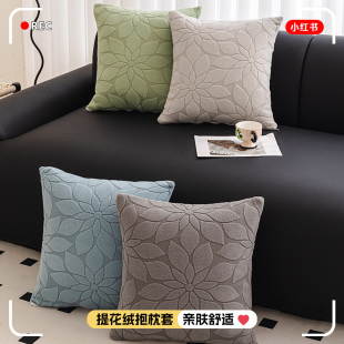 北欧风沙发抱枕客厅靠垫纯色提花绒护腰靠枕床头靠背抱枕套不含芯