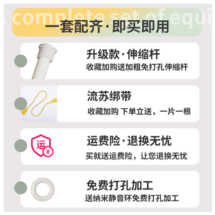 全遮光窗帘免打孔安装 不透 卧室飘窗遮阳专用伸缩杆一整套2025新款