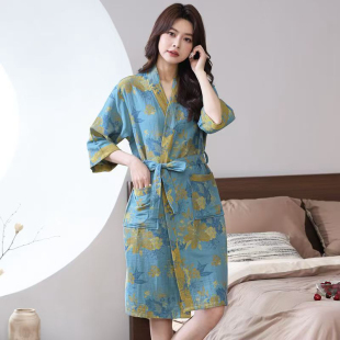 全棉睡袍 薄款 浴袍女纯棉吸水纱布浴衣洗澡用浴服四季 通用睡衣夏季