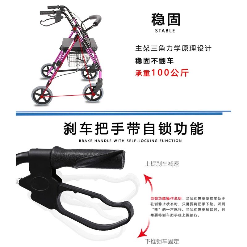 佛山东方老人助行器可坐可推可折叠残疾人家用康复四轮辅助行走器