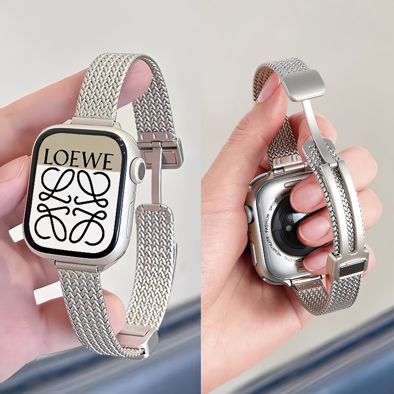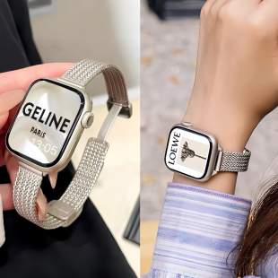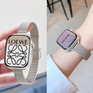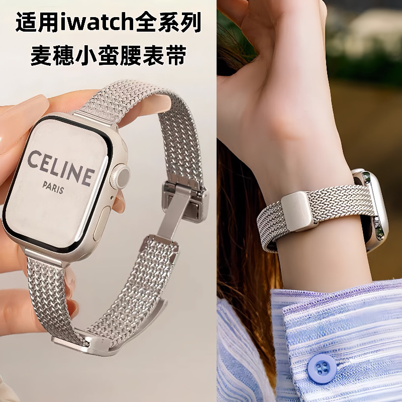 适用iwatch苹果手表带金属麦穗纹小蛮腰夏天透气applewatch表链