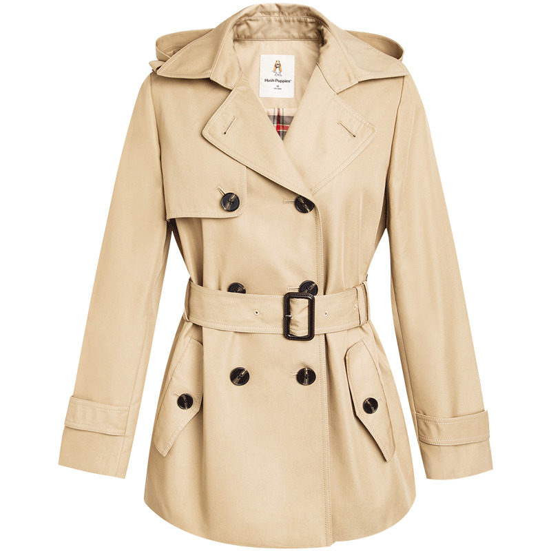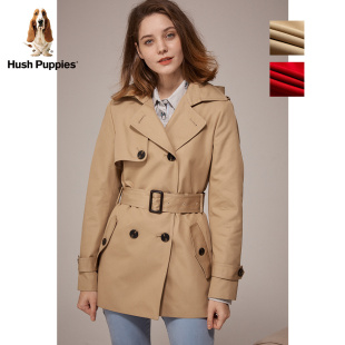 秋季 暇步士女装 红色大衣挺括不易皱通勤连帽风衣外套 新年款