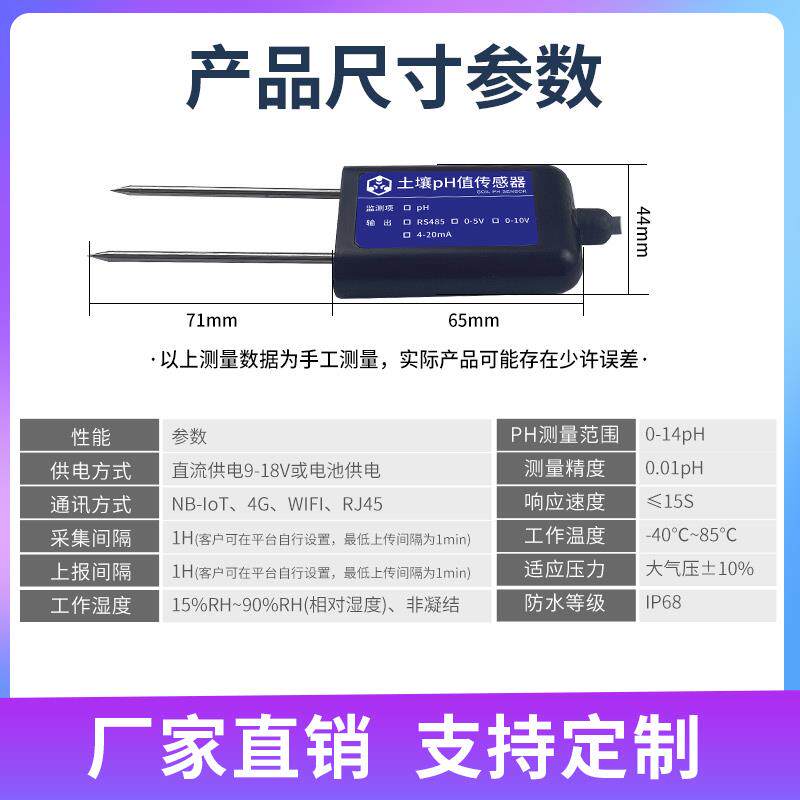 土壤酸碱度传感器NB WIFI输出智慧农业PH计RJ45土壤PH检测仪