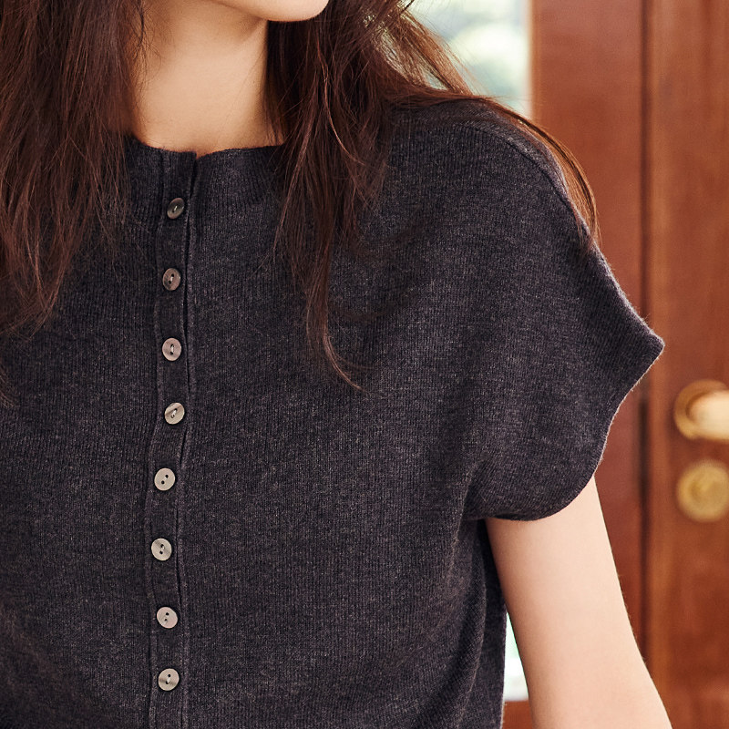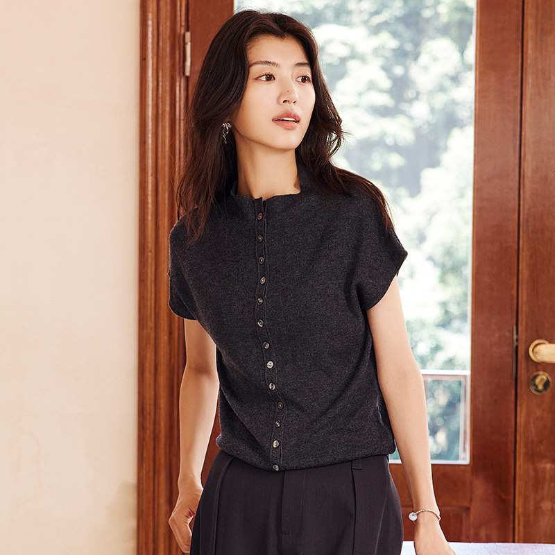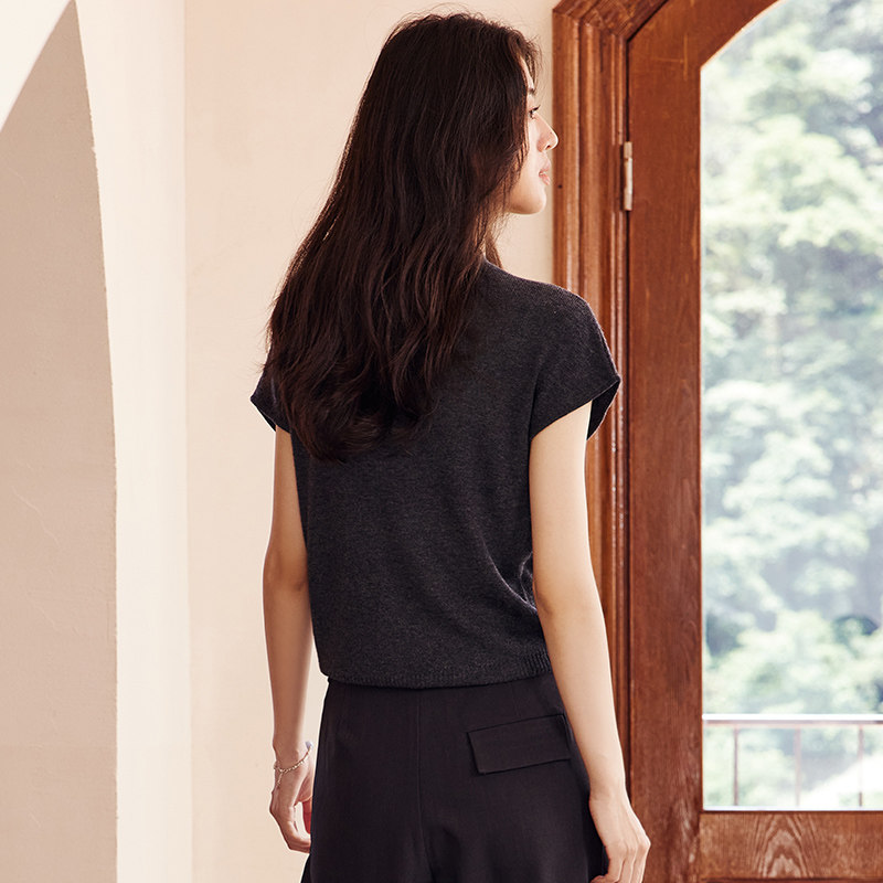 弹力宽松百搭上衣 T恤女2025年新款 G07Q04A1052 短袖 GCRUES针织衫