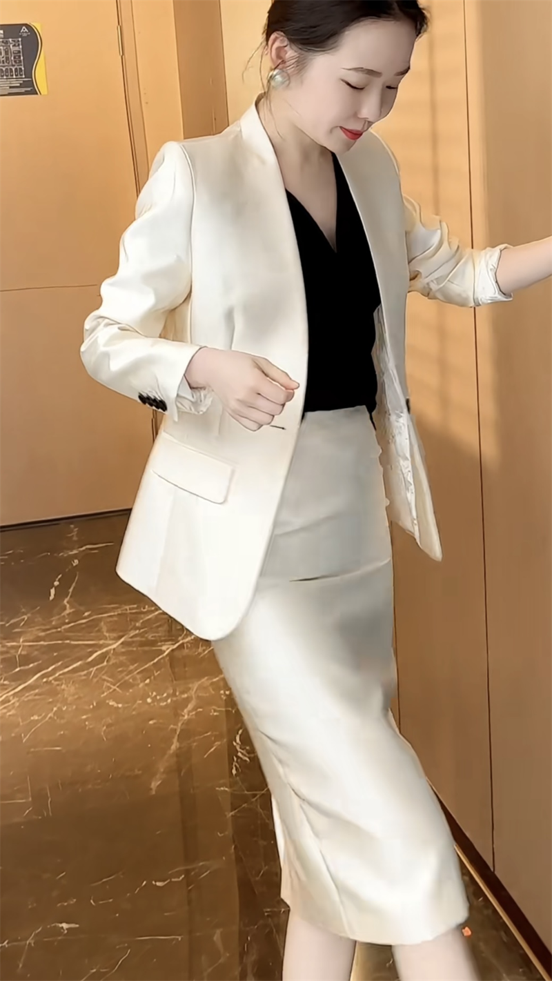 欧洲站网红气质百搭洋气爆款 纯色高端女士炸街套裙外套搭配半身裙