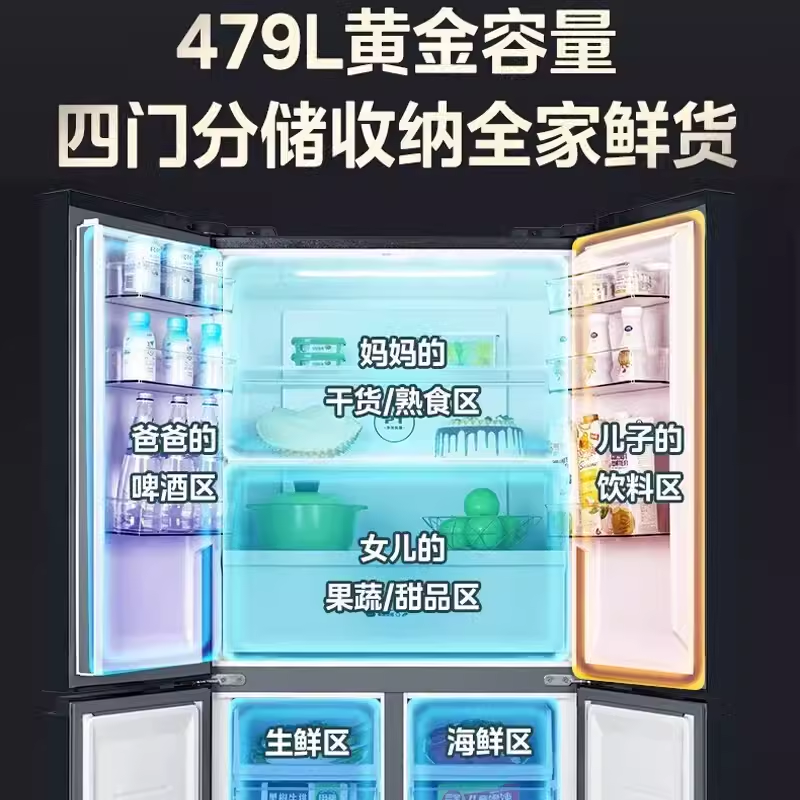 Midea 479WSPM BCD 十字门双变频风冷无霜一级十字门冰箱 美