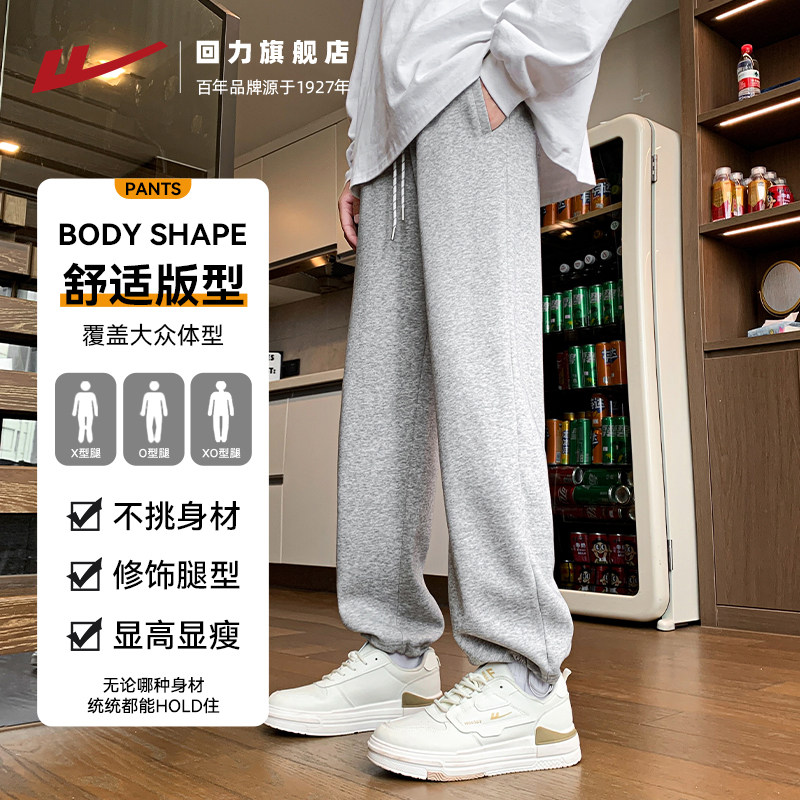 薄灰色休闲裤 直筒宽松两穿束脚长裤 子 男春秋2025新款 回力运动卫裤