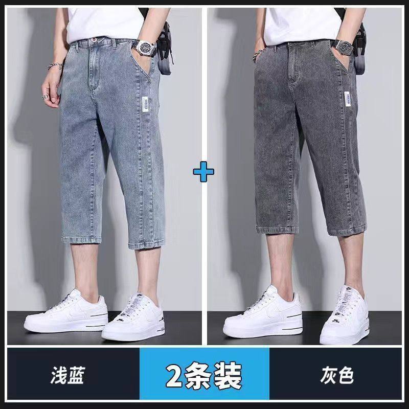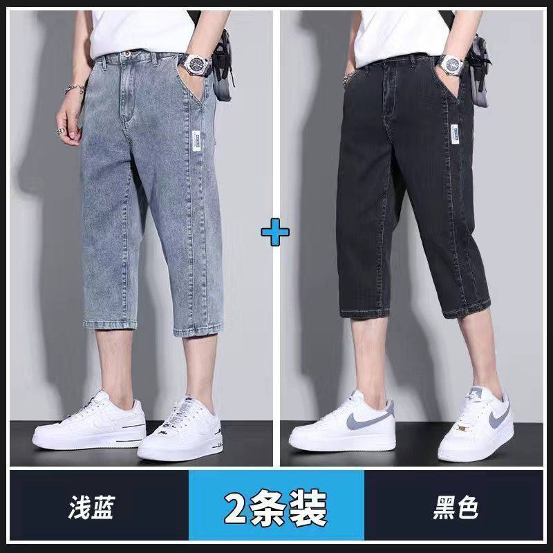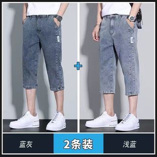 男夏季 休闲中裤 薄款 子男士 潮牌夏天 直筒宽松7七分裤 八分牛仔短裤