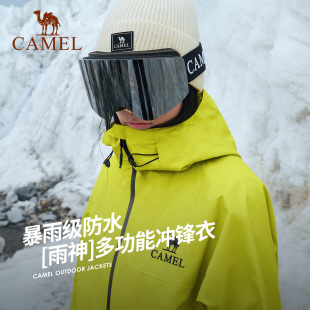 红色外套旅游单冲男 骆驼户外雨神冲锋衣防风防水硬壳女款 紫荆红