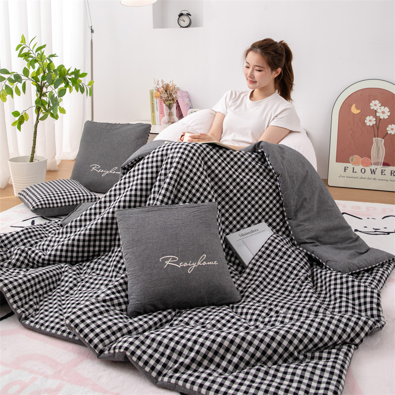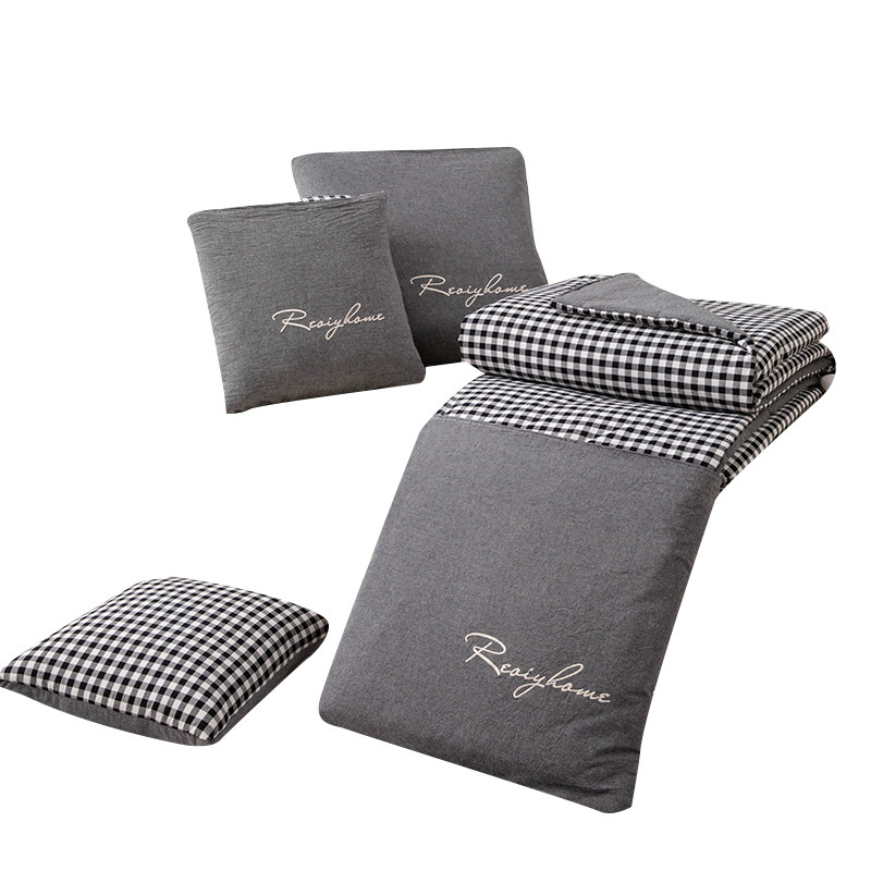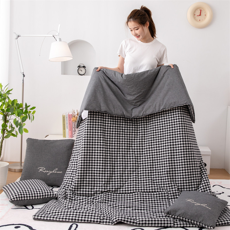 全棉口袋被 纯棉抱枕被子两用午睡办公室空调夏被折叠毯车上靠垫