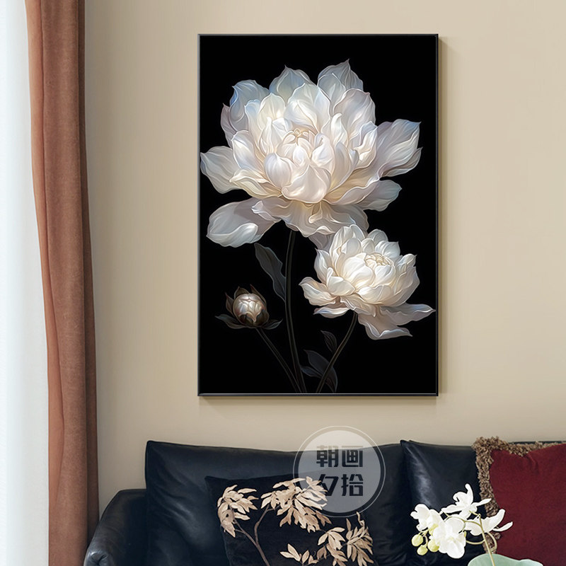 法式 饰画富贵山茶花沙发背景墙挂画小众高级感玄关走廊壁画 客厅装
