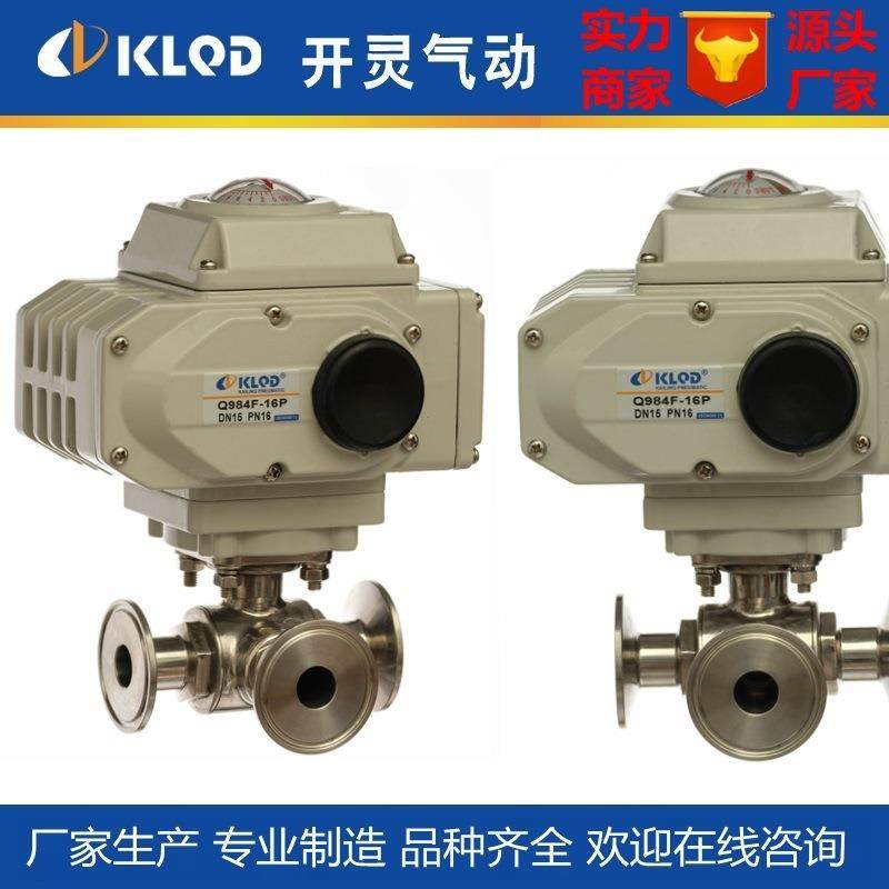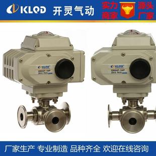Q945F 16R不锈钢16法兰连接T型三通电动球阀配开关调节型执行器