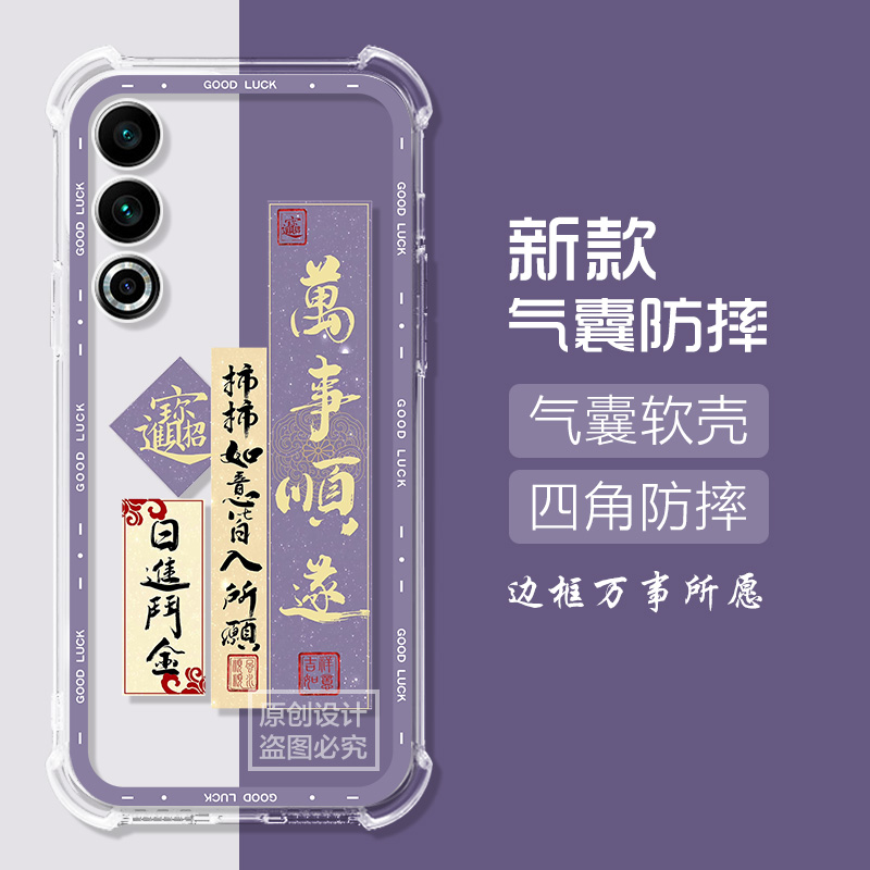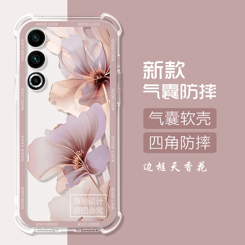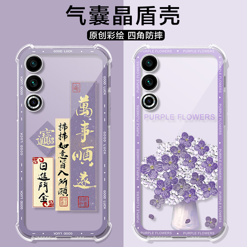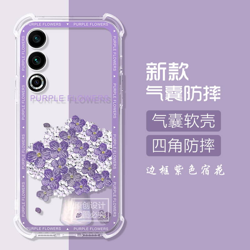适用魅族21Note手机壳卡通紫花束魅族meizu 16spro可爱猫防摔气囊外壳男女 21note保护套魅族20classic硅胶16