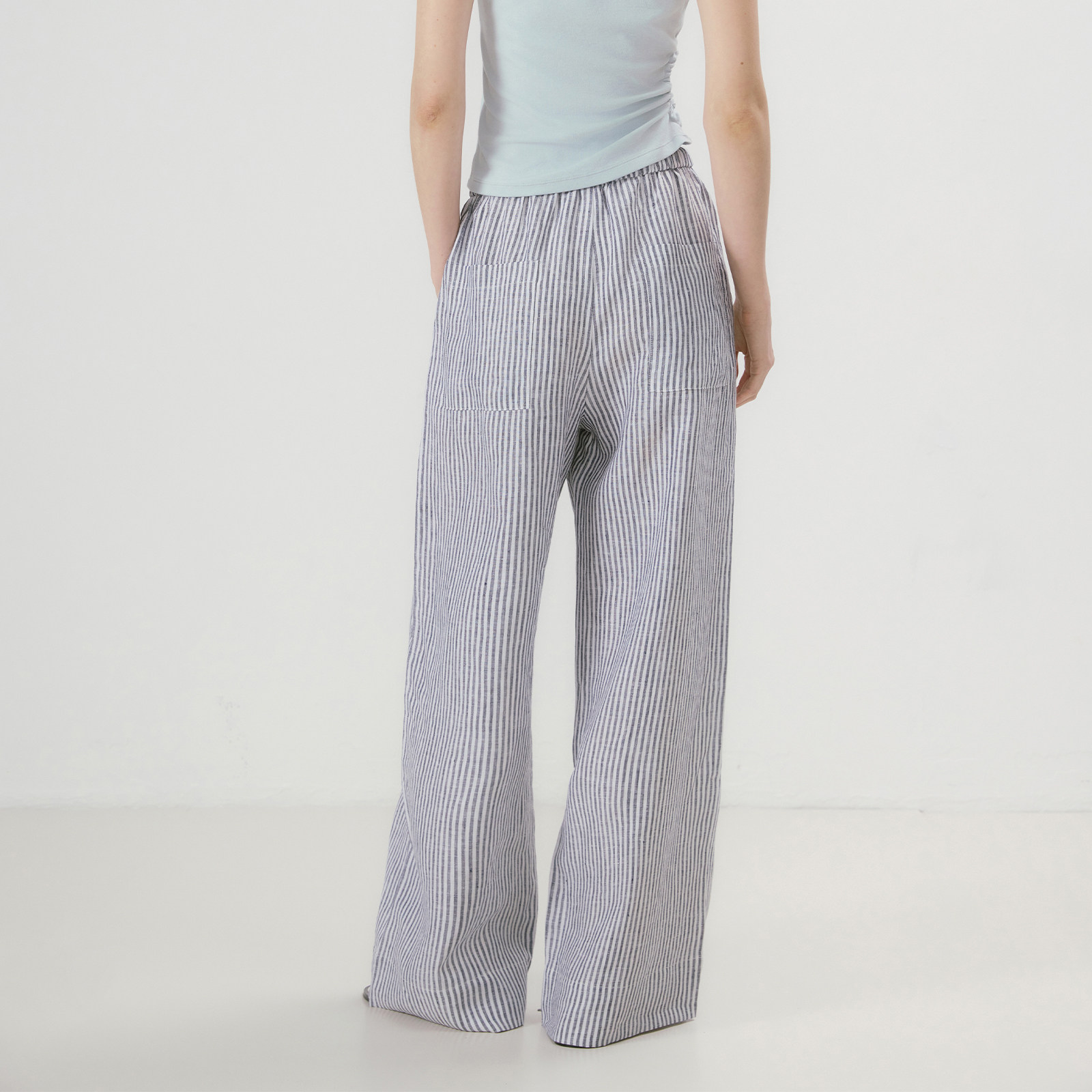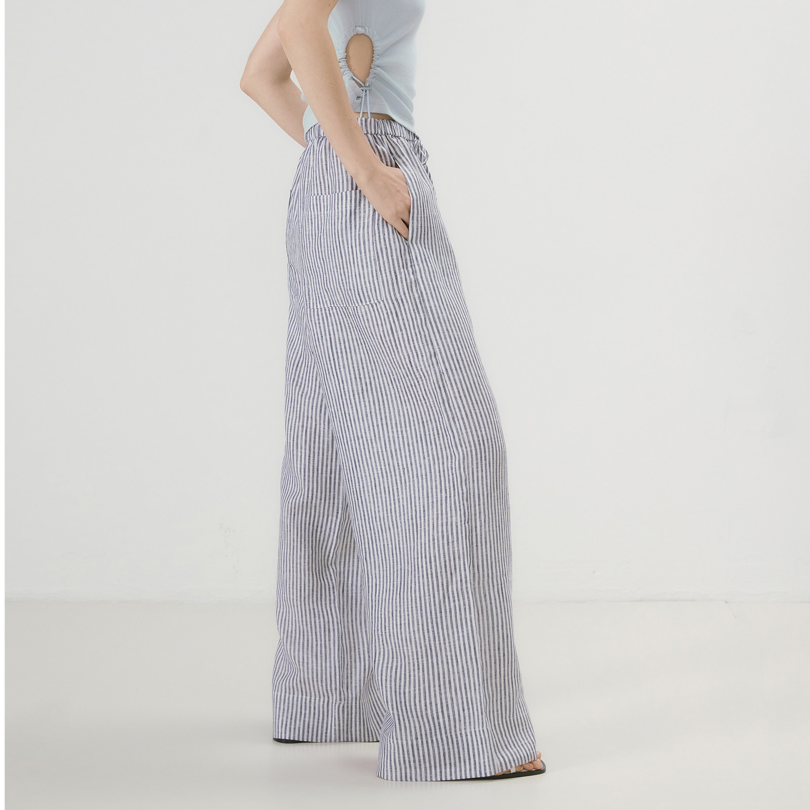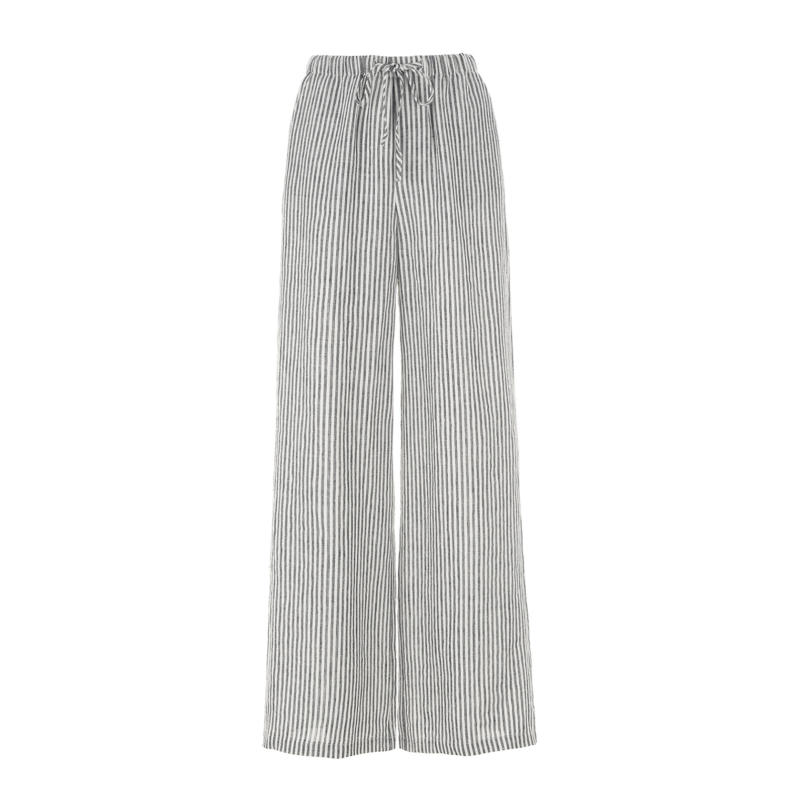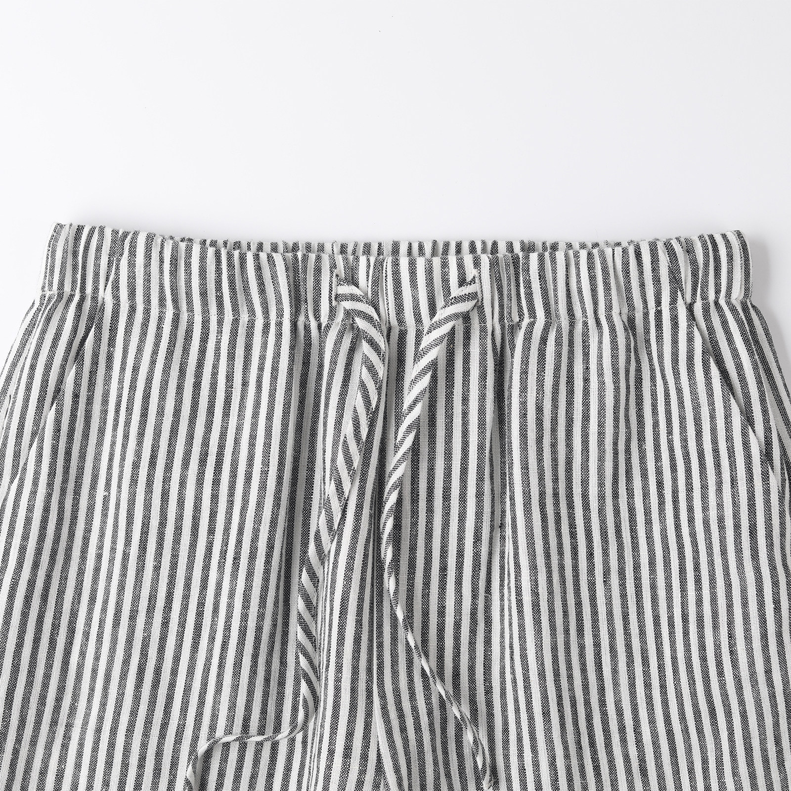 try夏季 百搭休闲宽松裤 新款 时尚 子 黑白条纹松弛感舒适阔腿裤 wana