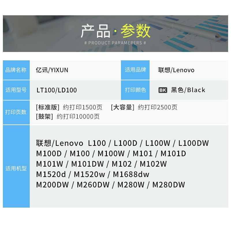 适用联想M200DW粉盒M260DW硒鼓M280W墨盒GT1000 M280DW打印机碳粉盒GD1000成像鼓鼓架至像200一体机墨粉盒