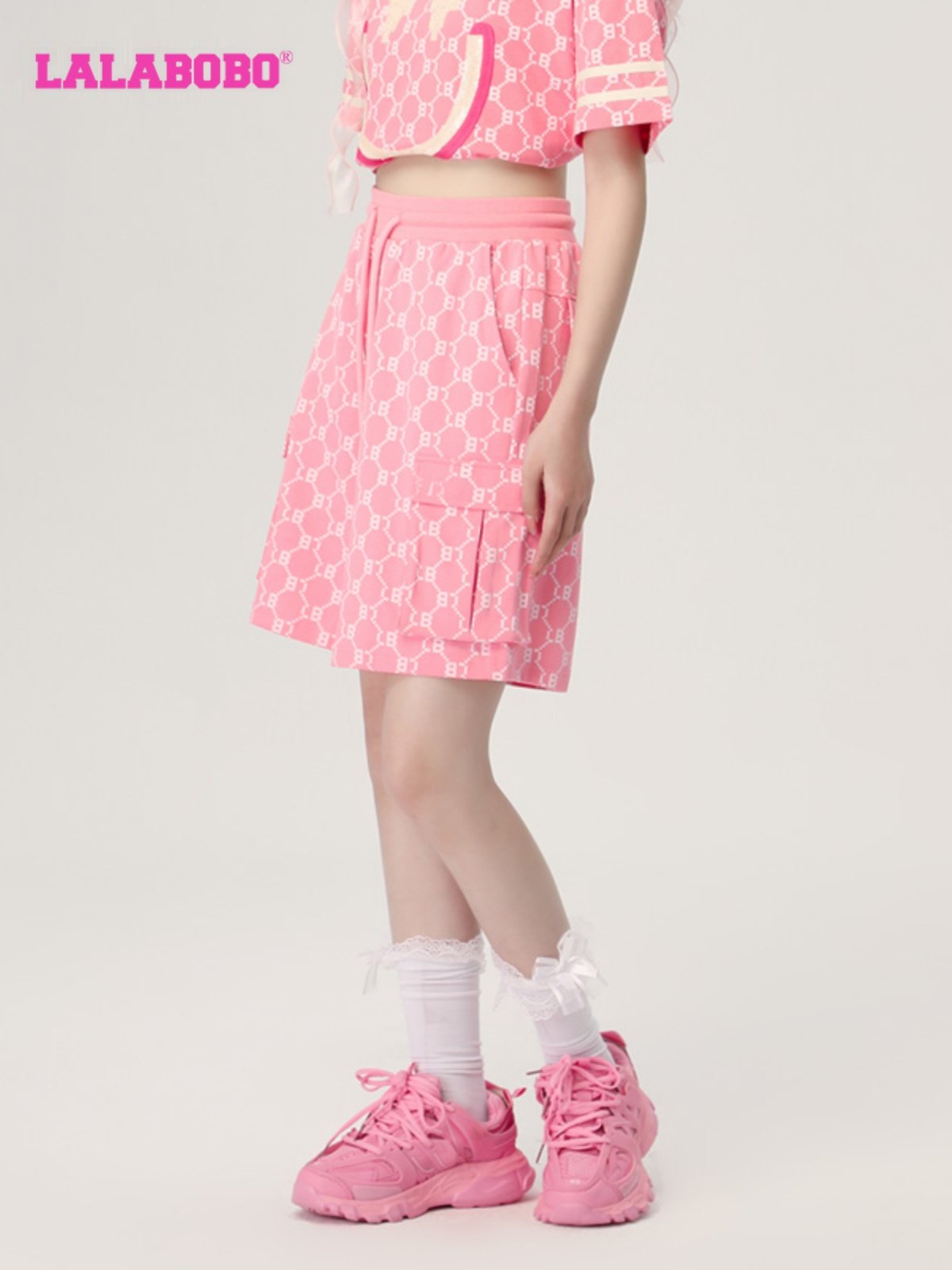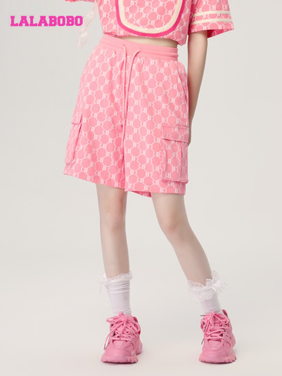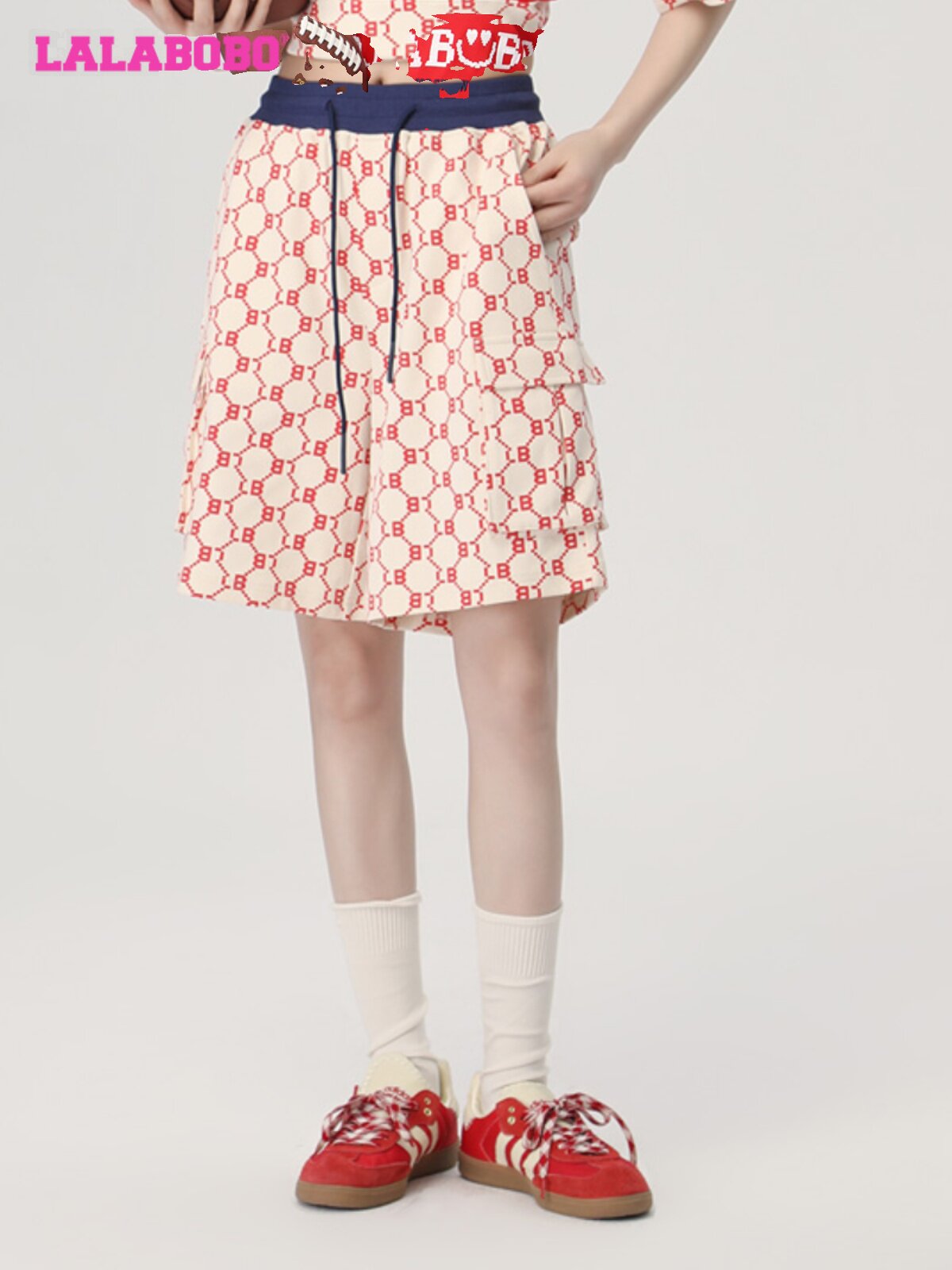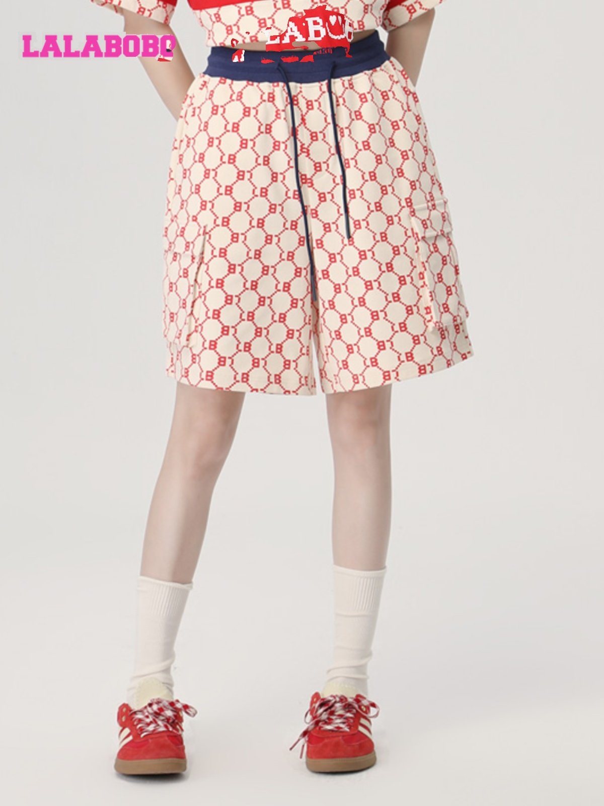 LBCB 复古老花宽松运动休闲阔腿短裤 WXZD40 新款 LALABOBO2023夏季