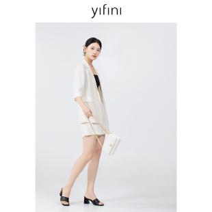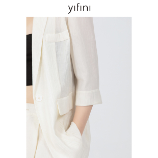 女初秋新款 Yifini 西装 宽松七分袖 简约通勤外套 易菲天丝薄款