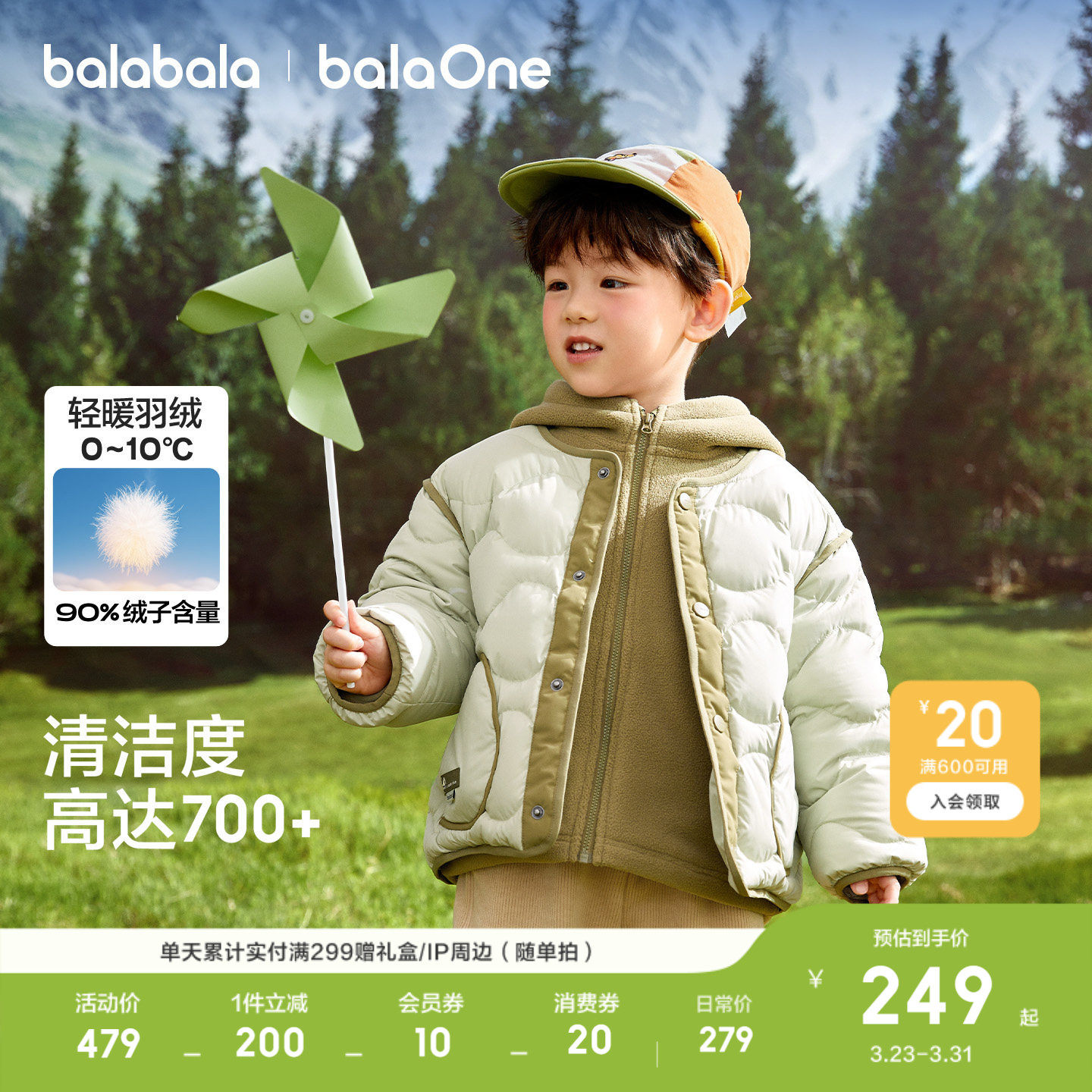 外套宝宝摇粒绒两件套 衣服新款 巴拉巴拉童装 儿童羽绒服男女童冬装