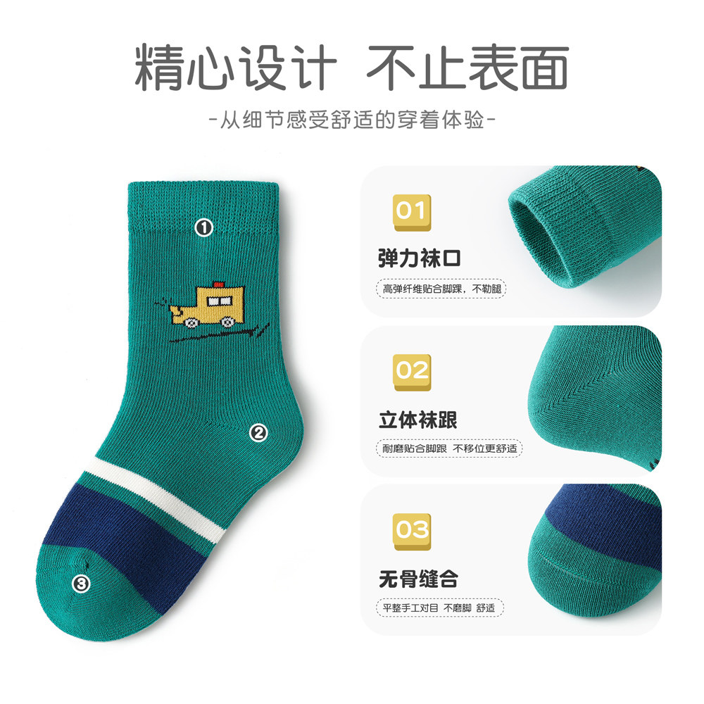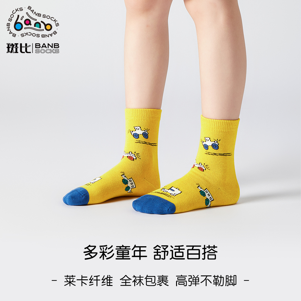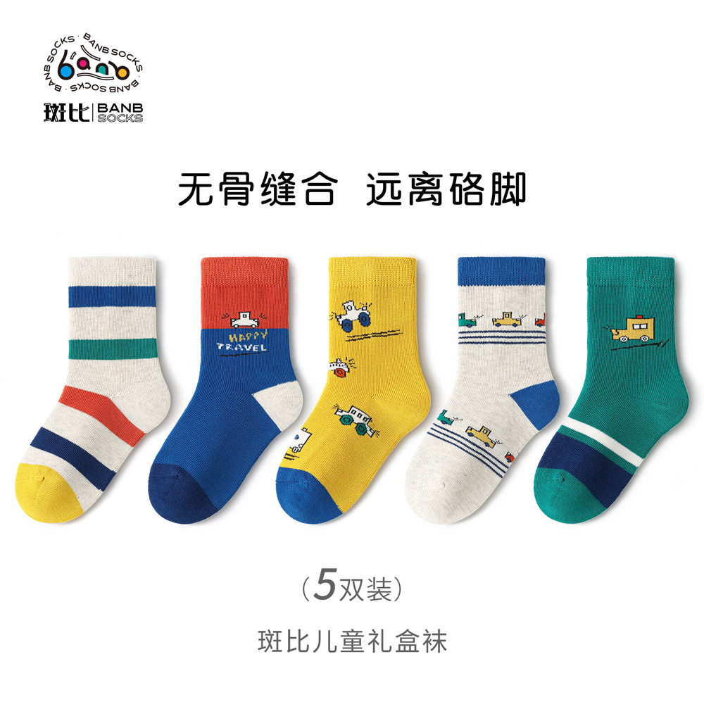 斑比童袜儿童袜子春秋款 棉袜男童无骨中筒袜 中大童宝宝男孩秋冬季