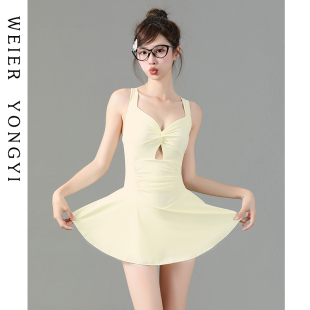 泳衣女2025新款 平角保守遮肚收腰显瘦泡温泉游泳衣 仙女范连体裙式