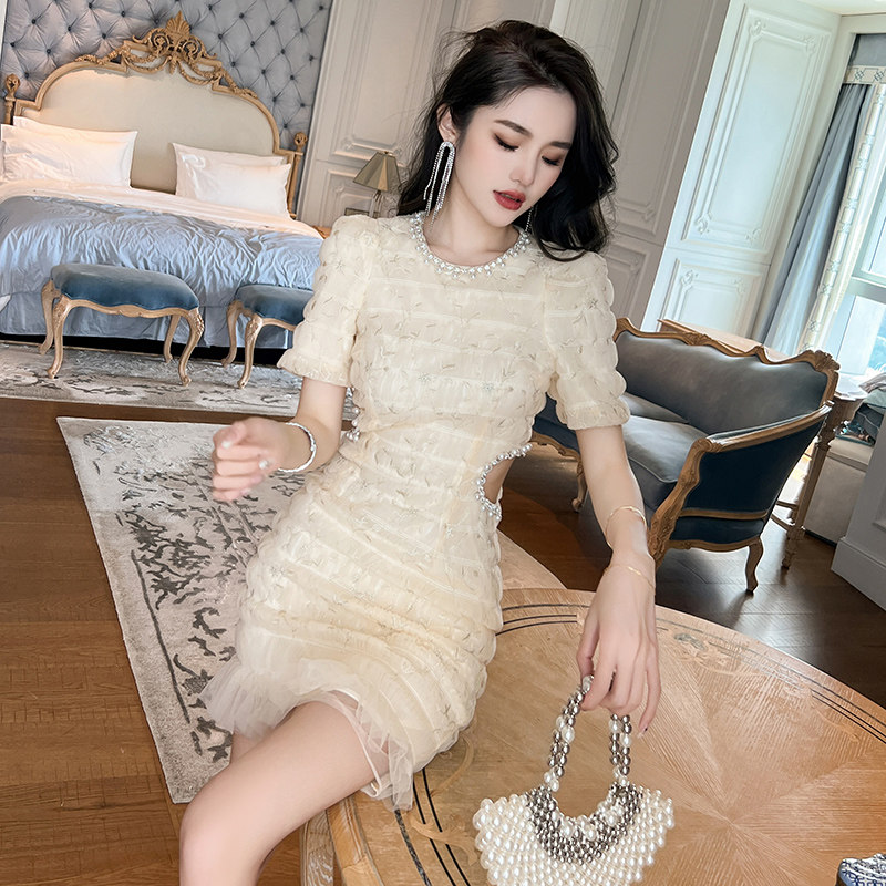 收腰镂空高级感网纱绣花连衣裙夏装 精致小个子优雅名媛气质包臀裙