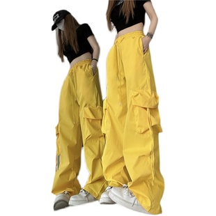 复古辣妹工装 嘻哈潮流hiphop阔腿裤 裤 宽松街舞长裤 子 女夏薄款 美式
