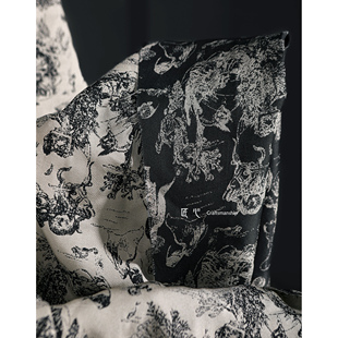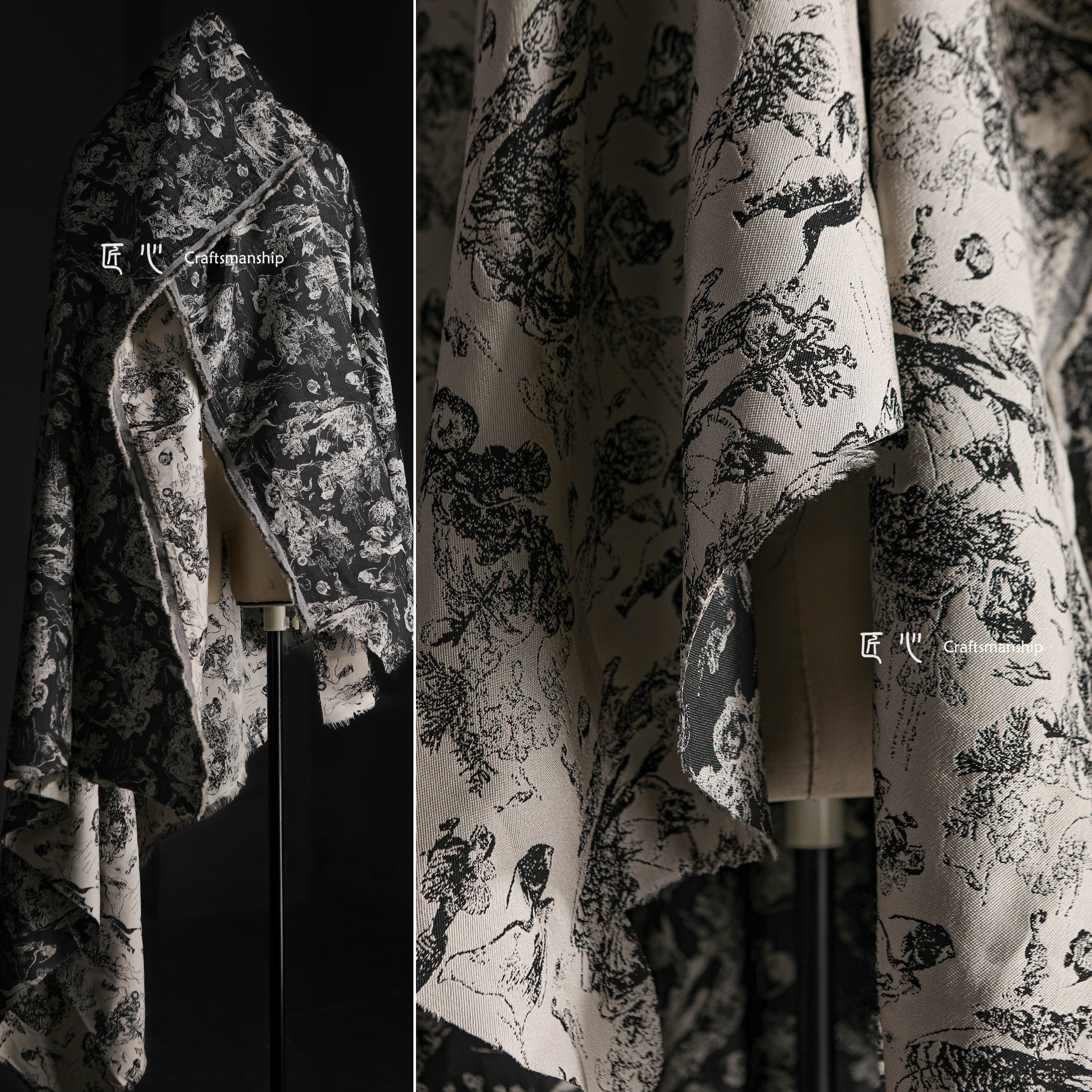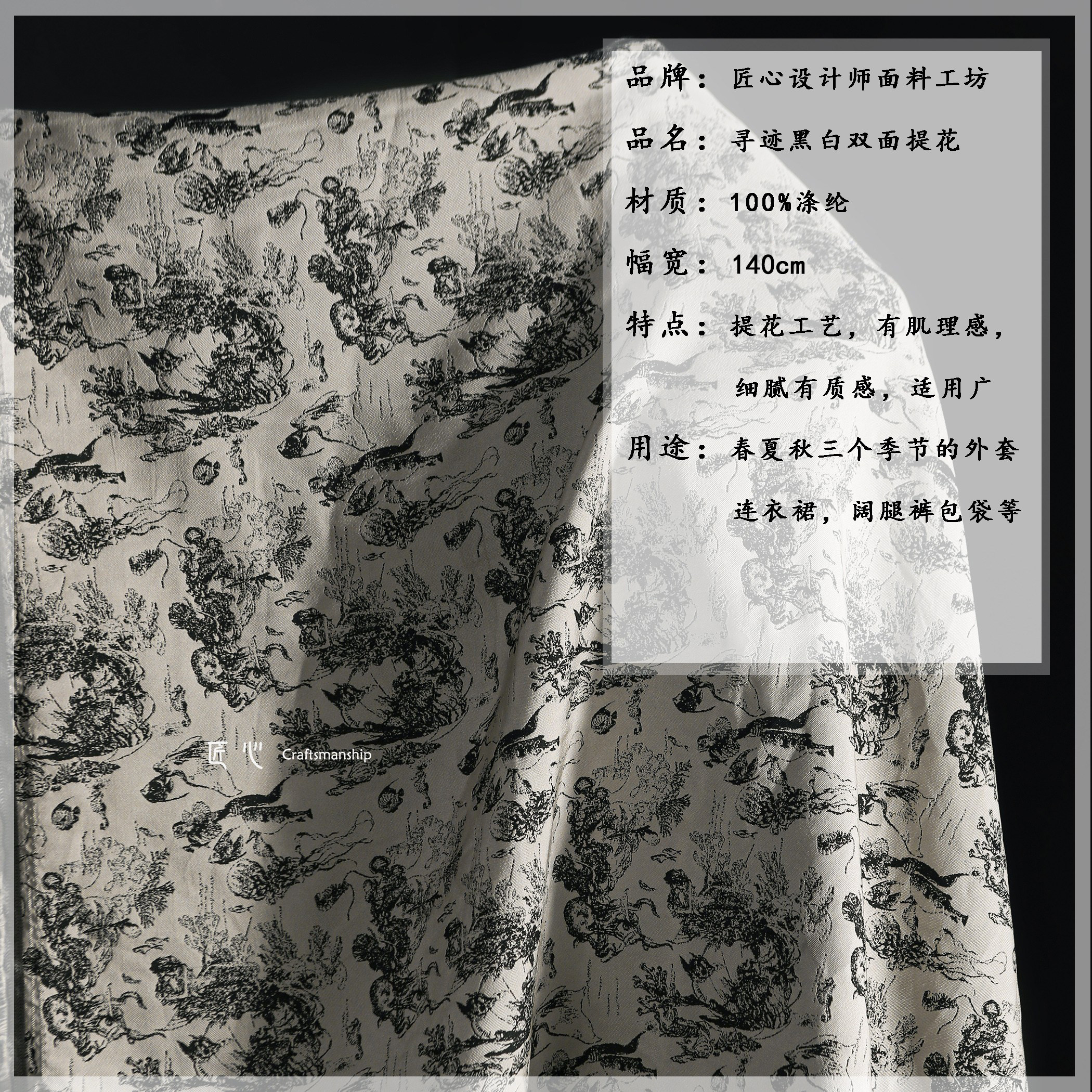 设计师面料 外套裙子DIY服装 寻迹黑白双面提花布料 文艺复古中式