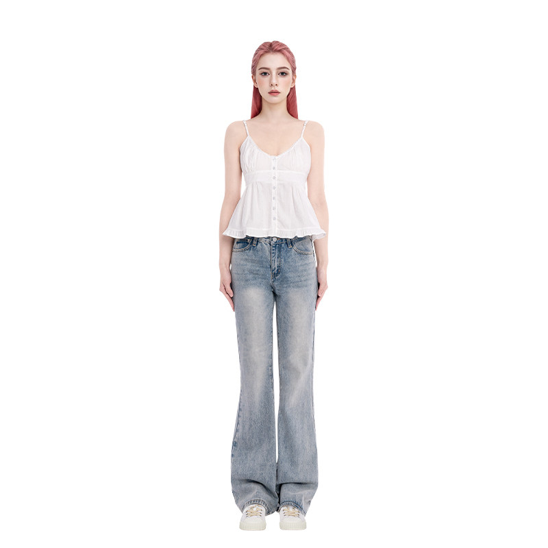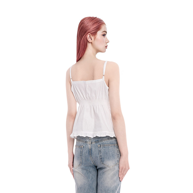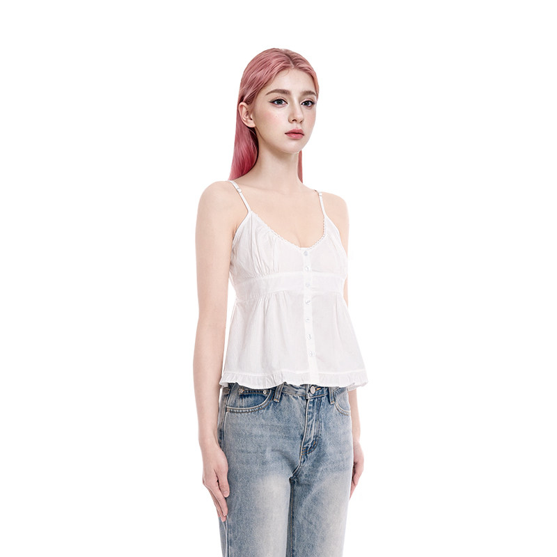 BM木耳边开衫 复古碎花花边V领背心内搭上衣 吊带女六粒扣2026新款