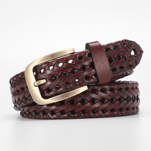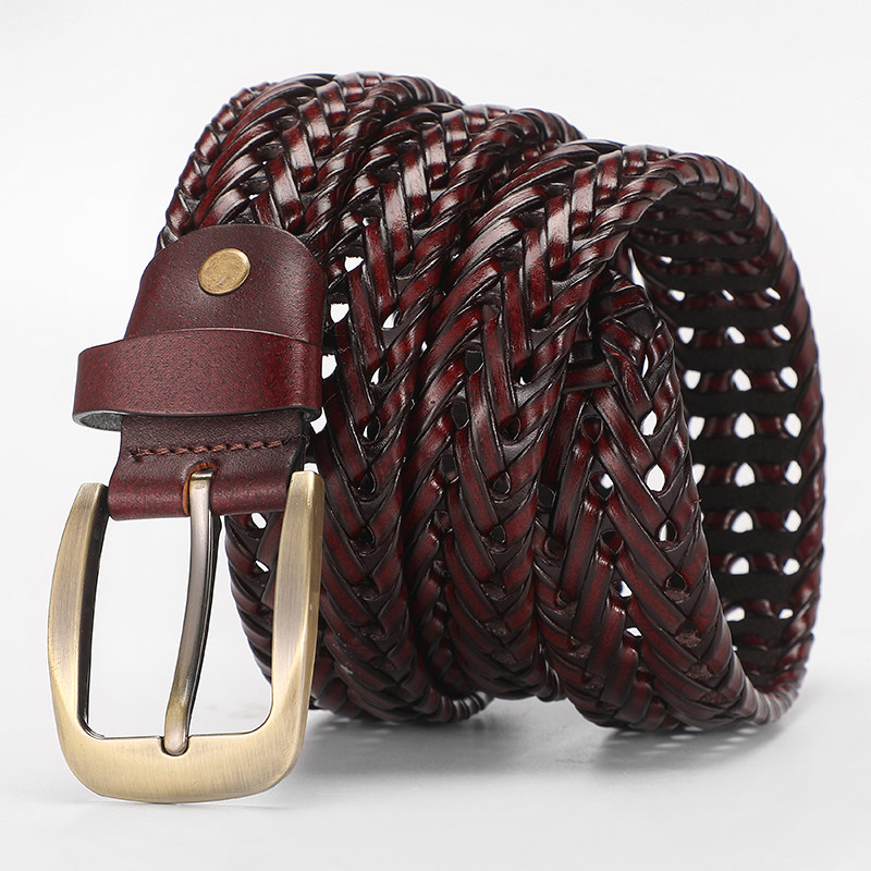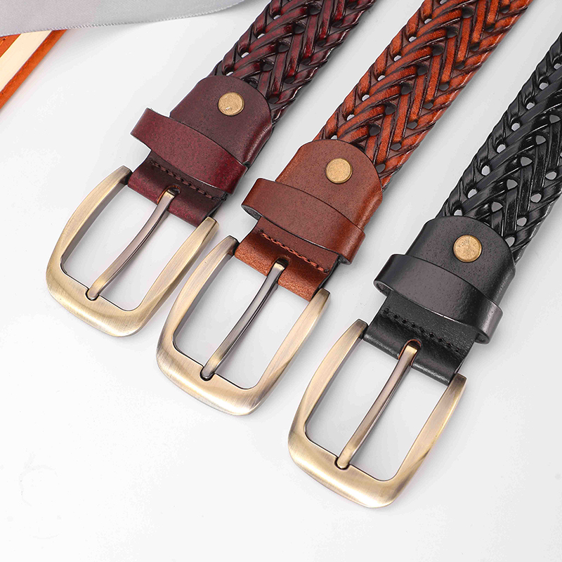 皮带男士 腰带学生针扣百搭潮中年轻人 复古纯手工编织免打孔真皮裤