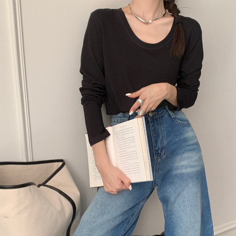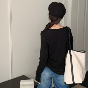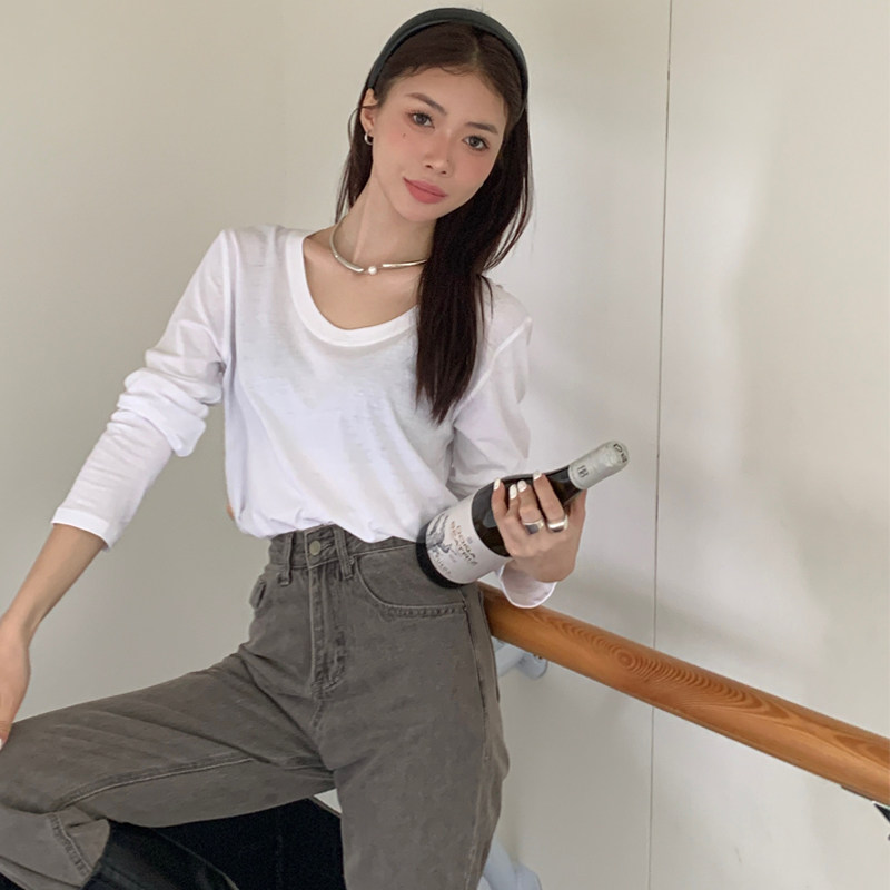 内搭上衣纯色显瘦u领打底1544 2023新款 t恤女秋季 闰熙runxi长袖