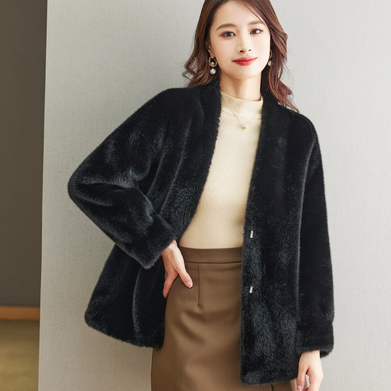 仿欧貂毛茸茸大衣 时尚 毛毛外套皮毛一体皮草女环保毛新款 秋冬长袖