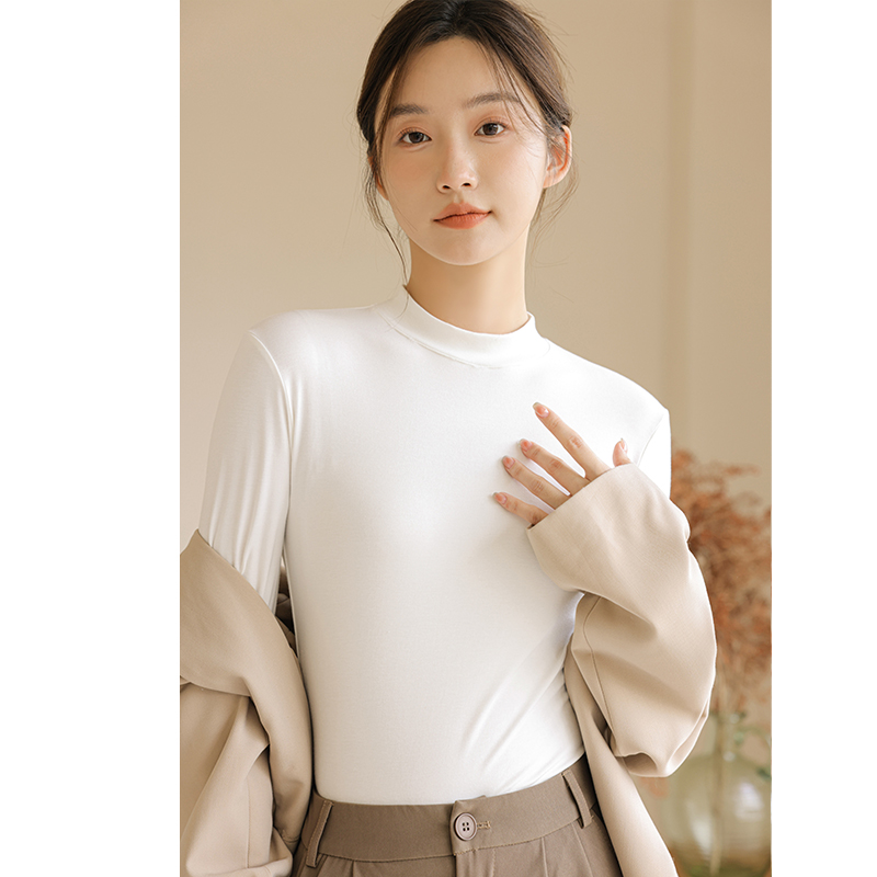 内搭t恤针织衫 莫代尔小立领打底衫 半高领长袖 新款 上衣 女2025春季
