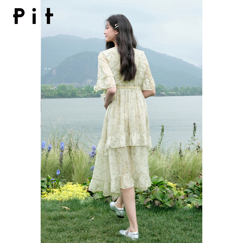 PIT长裙碎花连衣裙女2025夏装 收腰显瘦气质V领a字裙子仙女 新款