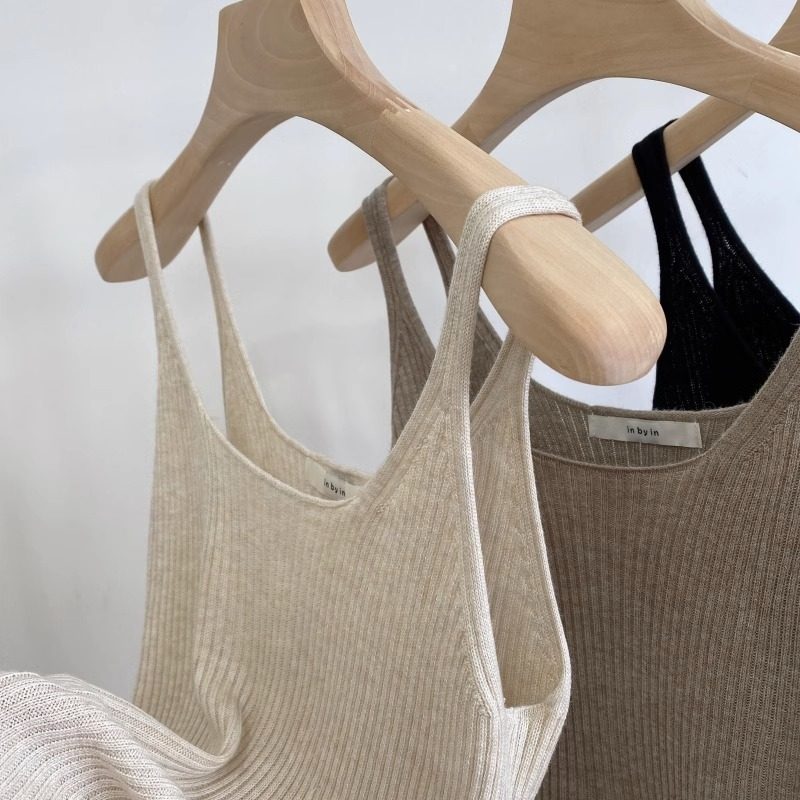 杏色上衣打底衫 米色外穿法式 2025年新款 针织吊带小背心女内搭夏季