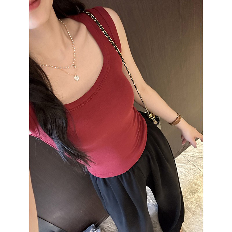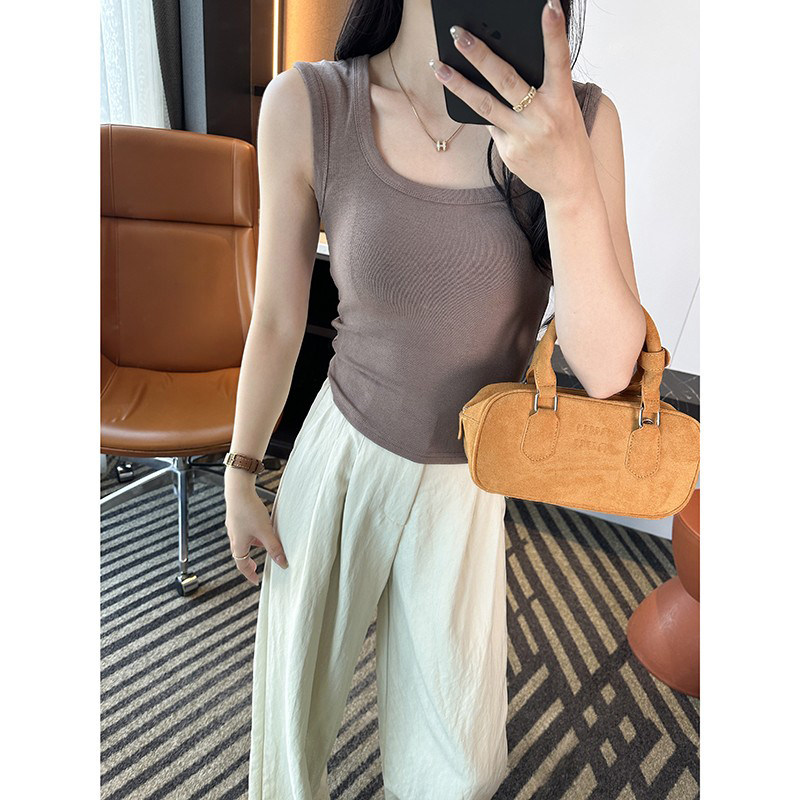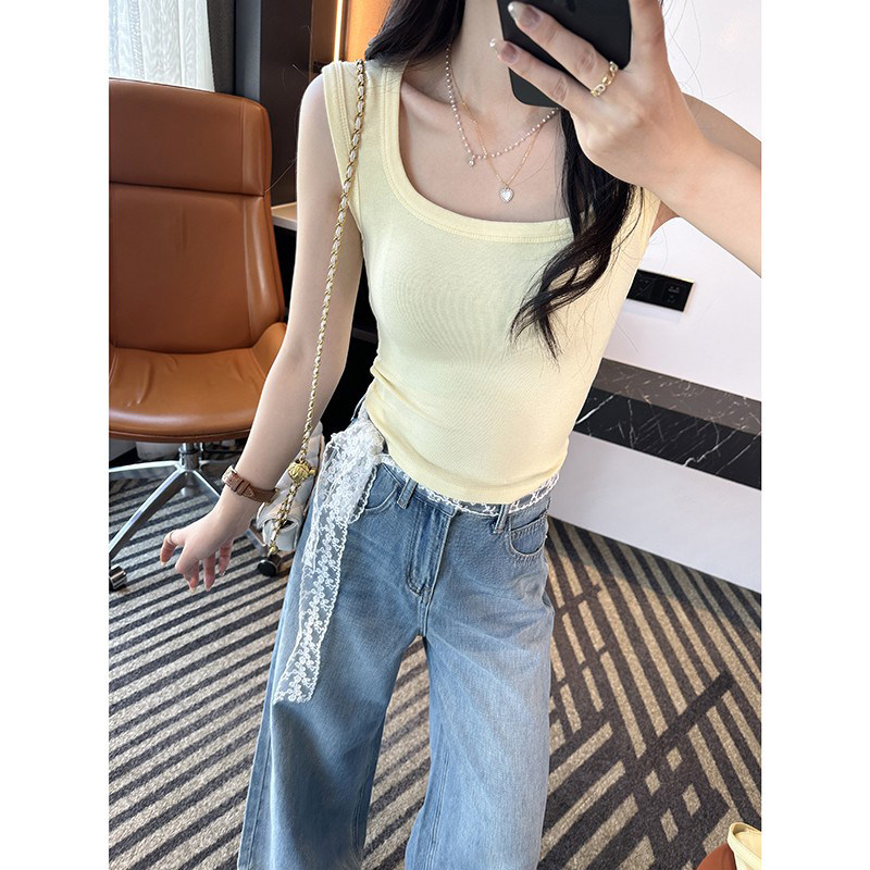 外穿方领宽肩带无袖 一眼心动 新款 吊带背心女春季 上衣 纯欲风修身