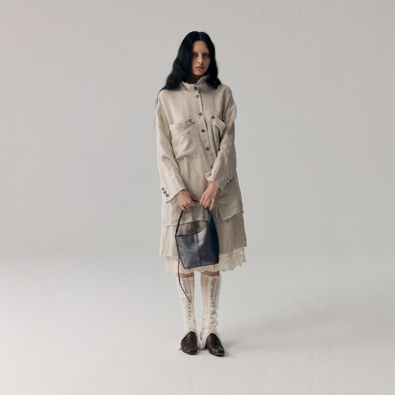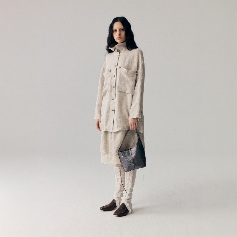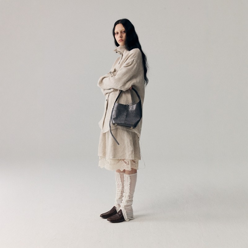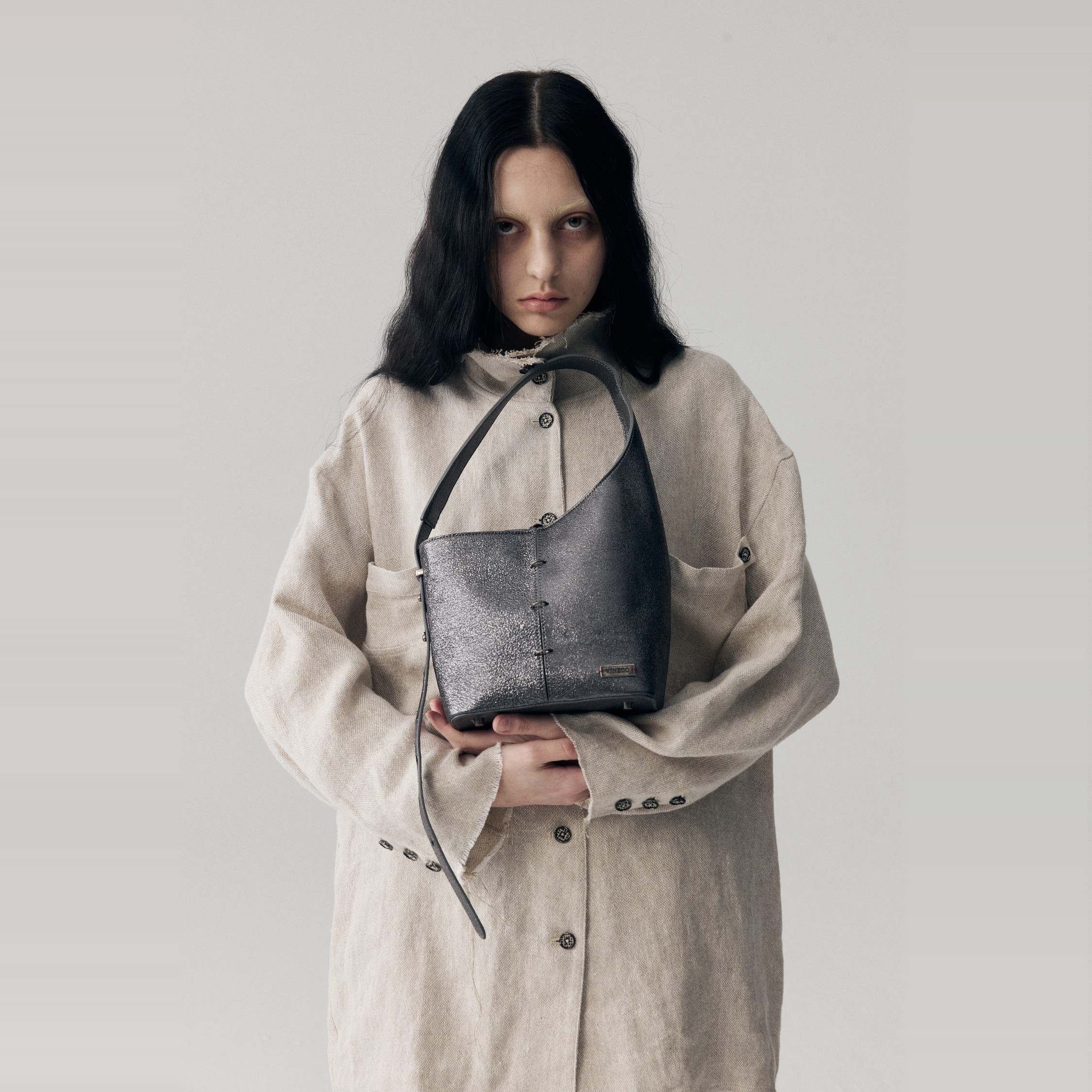 VINZOO 银色闪光裂纹羊皮拼接单肩腋下手提水桶包女新款