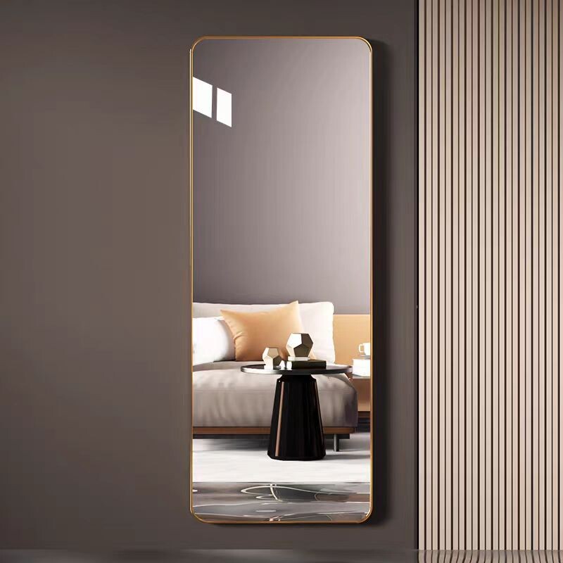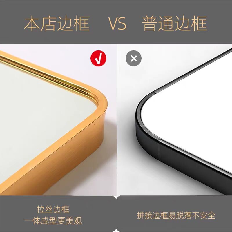 轻奢全身镜壁挂式 贴墙玄关镜穿衣镜家用试衣镜卧室金边框方形镜子