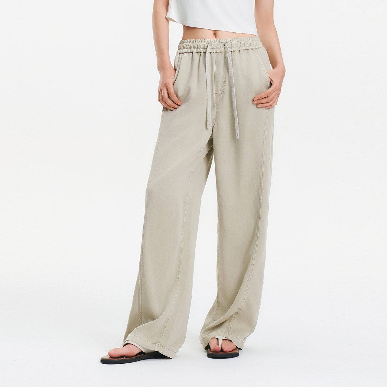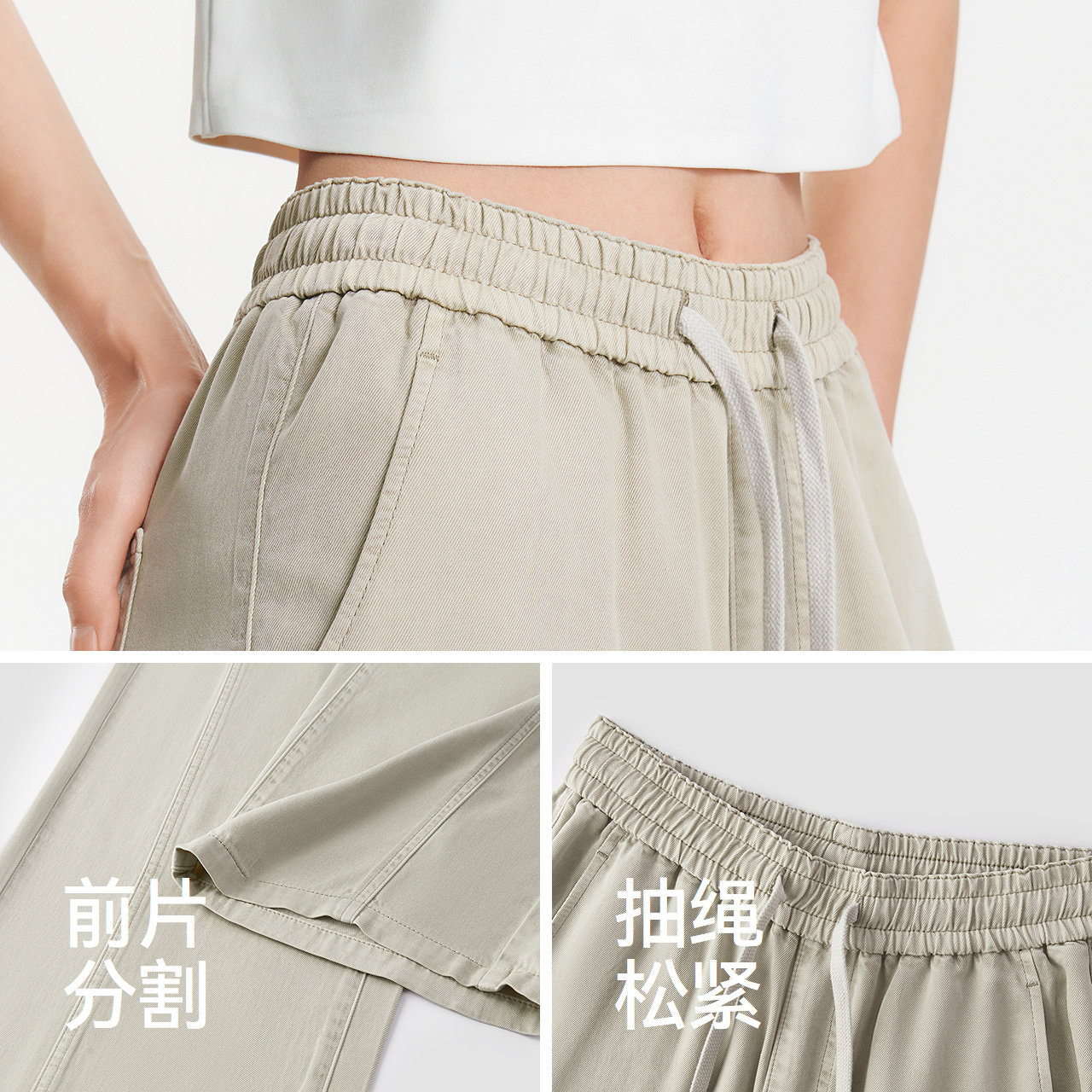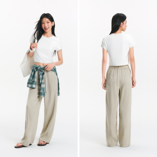 松紧腰宽松复古潮流显腿长拖地裤 女夏分割阔腿裤 森马牛仔裤 森柔