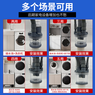 潜水艇洗衣机下水四通地漏接头烘干机扫地机排水管二合一三通五