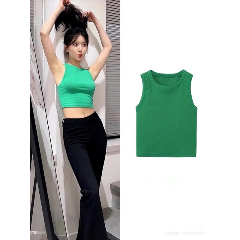 无袖 纯欲辣妹短款 上衣 绿色针织吊带背心女夏季 桃花坞宋茜明星同款