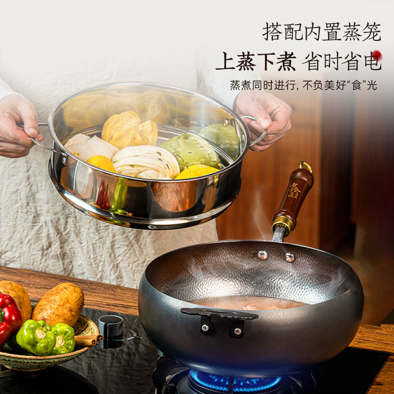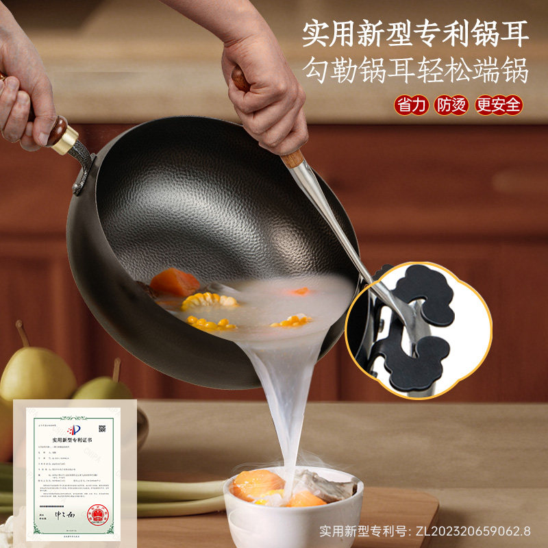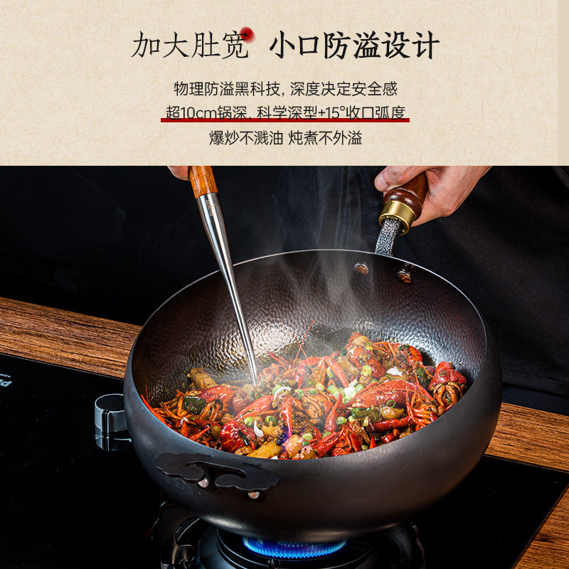 古臻匠锤纹大肚锅平底铁锅炒锅无涂层家用健康汤锅电磁炉大肚铁锅