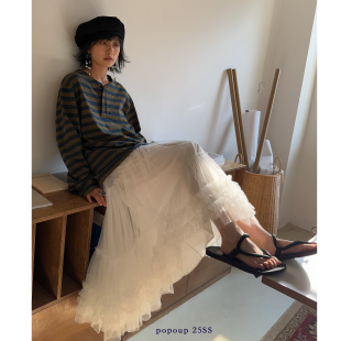 打底衫 亚麻条纹撞色长袖 绿野仙踪 popoup25SS