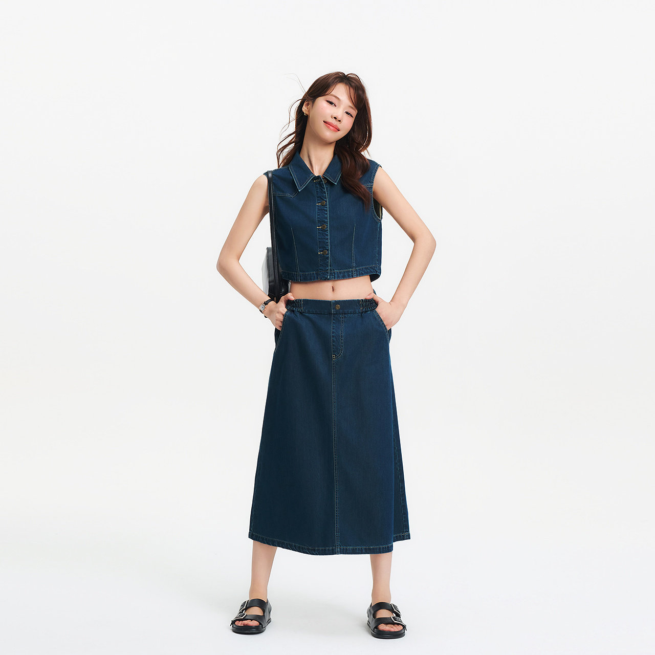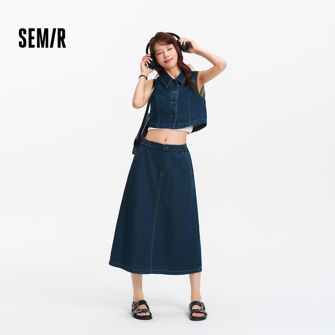 夏季 森柔牛仔 女伞裙短马甲2025新款 森马牛仔套装 两件套 商场同款