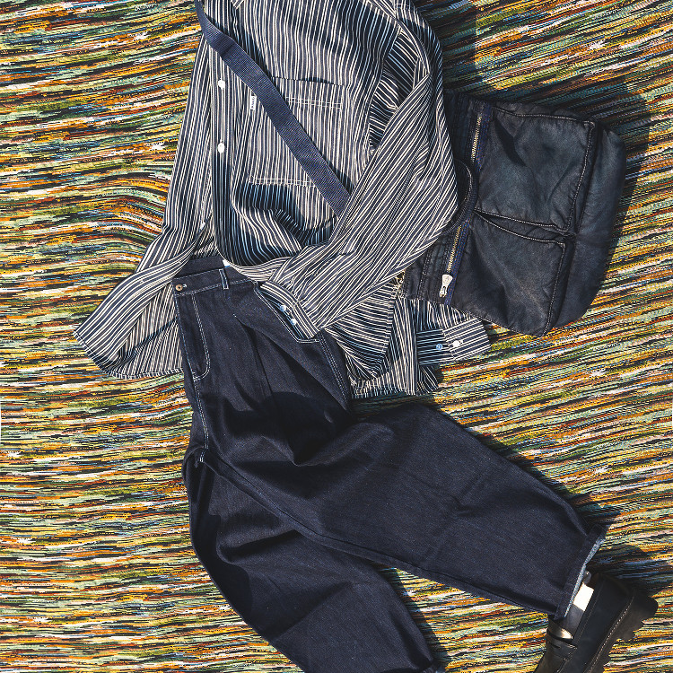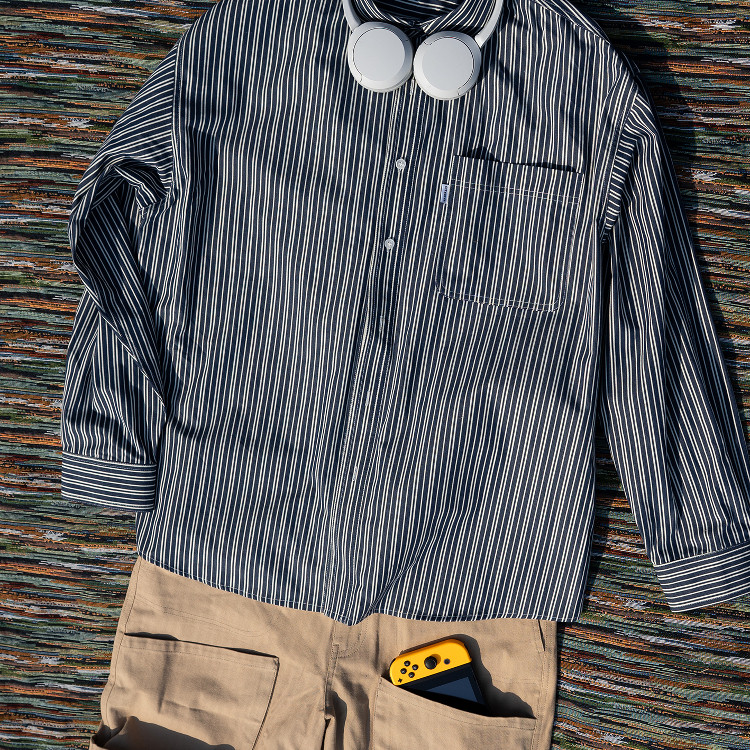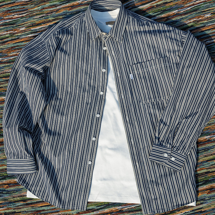 色织蓝白条纹衬衫 Shirt 全棉藏青色复古廓形 Pocket CITYDIVE