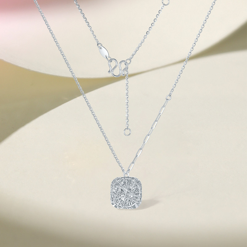 周六福铂金pt950链坠女款 爆闪小方糖绕线链坠送女朋友礼物旗舰店
