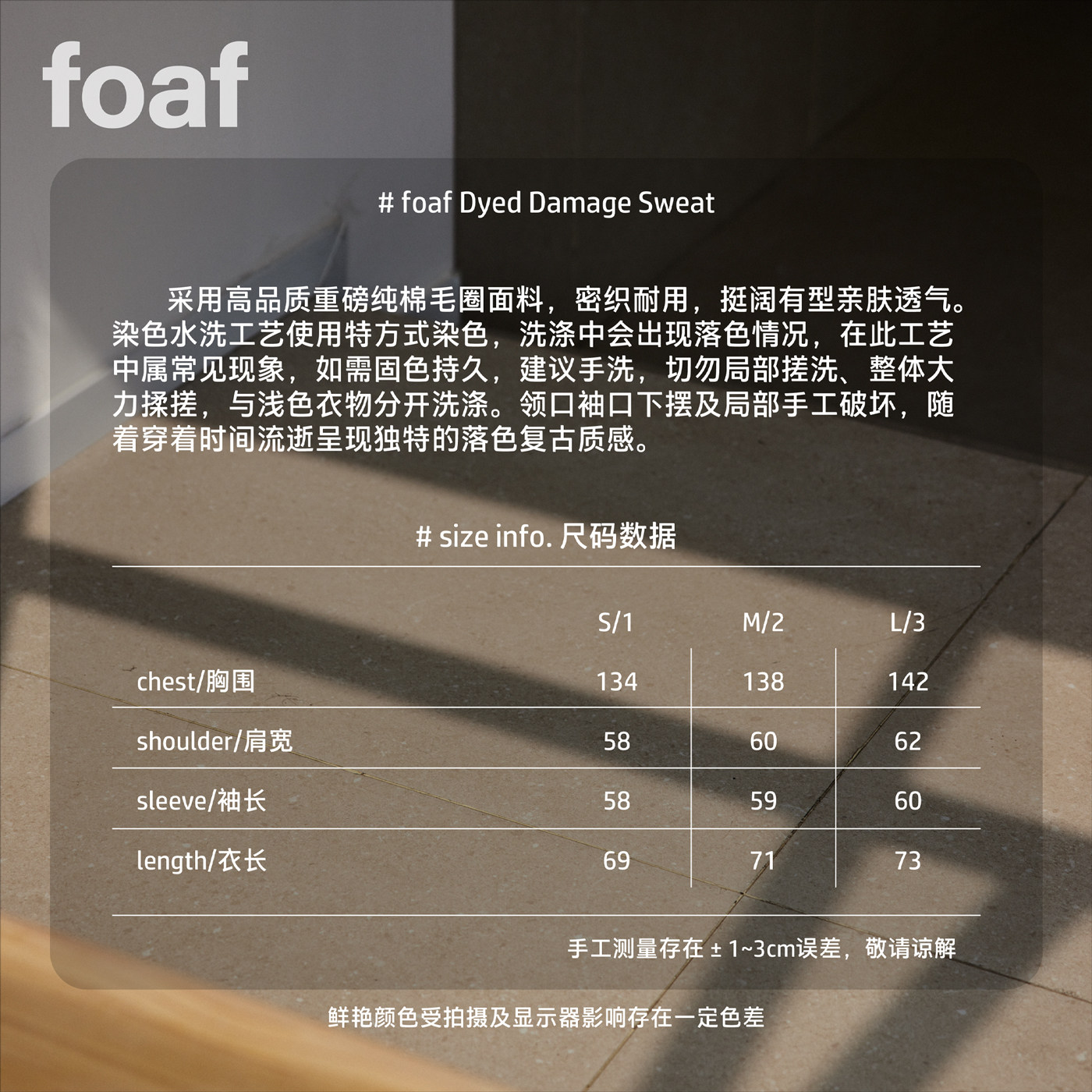 25SS FOAF Sweat Damage 日系重磅水洗做旧破坏宽松圆领卫衣 Dyed