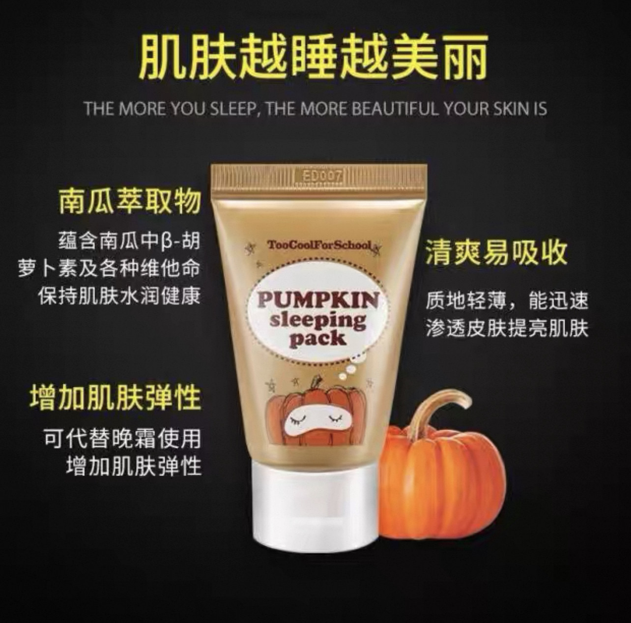 保湿 现货韩国too school南瓜睡眠面膜涂抹式 for 控油免洗 cool